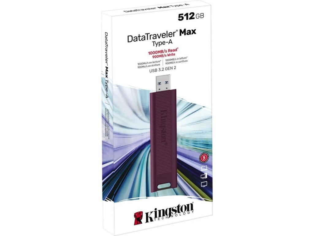 USB flash disky řady Kingston’s DataTraveler® Max využívají nejnovější standard USB 3.2 Gen 2 pro zajištění rekordních rychlostí čtení/zápisu 1 000/900 MB/s. Jedinečné pouzdro s prolisem, navržené s ohledem na přenosnost a pohodlí, chrání konektor, když ho nepoužíváte, a lze ho snadno přesunout jediným pohybem. Řada DT Max nabízí špičkový výkon a rozšířené kapacity až 1 TB, což z těchto disků činí ideální řešení pro přenos a ukládání velkých digitálních souborů, jako jsou snímky v rozlišení HD, videa v rozlišení 4K/8K, hudba a další. Disky DT Max jsou kryty omezenou pětiletou zárukou, zdarma dostupnou technickou podporu a legendární spolehlivostí výrobků firmy Kingston.