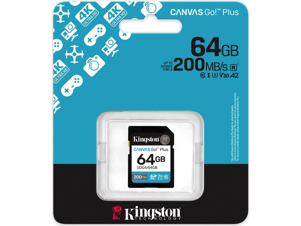 SD karta Canvas Go! Plus od společnosti Kingston je určena pro dobrodruhy, kteří se neustále loví dokonalý záběr. Díky vynikající přenosové rychlosti až 200 MB/s* SD karta Canvas Go! Plus urychluje váš pracovní postup a efektivitu, takže budete mít více času na to, abyste na své další cestě posunuli svou tvořivost do nových výšin. Rychlostní třídy U3 a V30 umožňují kartě Canvas Go! Plus pořizovat úžasná videa v rozlišení 4K Ultra-HD bez obav z nízké rychlosti nebo přeskakování snímků. Vyniká také při fotografování v sekvenčním režimu a nabízí plynulé a konzistentní snímky. Vezměte svoji vizi na cesty s SD kartou Canvas Go! Plus – ať se dobrodružství setká s tvořivostí.Ideální pro natáčení 4K UHD videa a pořizování fotografií v sekvenčním režimu na vaší digitální zrcadlovce