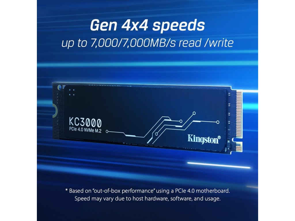 KC3000 NVMe SSD disk M.2 s rozhraním PCIe 4.0 poskytuje výkon neuvěřitelné úrovně díky použití nejnovější generace řadiče NVMe gen 4x4 a čipů 3D TLC NAND.Vylepši si úložiště a spolehlivost systému, abys udržel krok s náročnými úlohami a získal lepší výkon softwarových aplikací, například 3D vykreslování a vytváření obsahu v rozlišení 4K+.