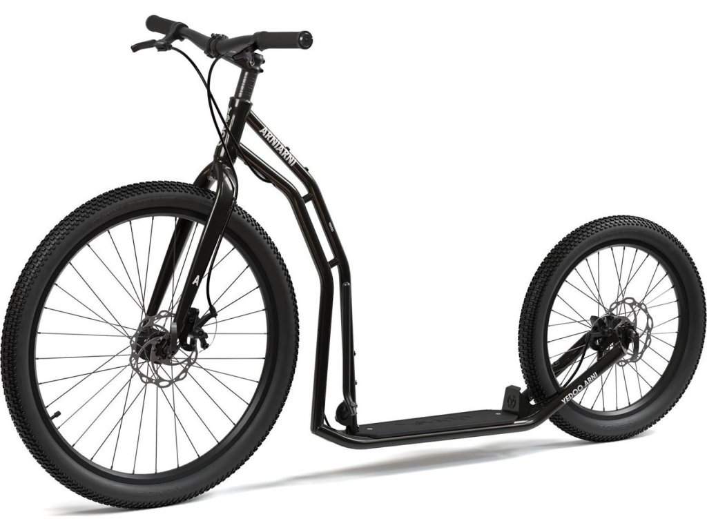 Praktický výklopný stojánek, který je součástí základní výbavy, lze za účelem snížení celkové váhy koloběžky snadno odmontovat