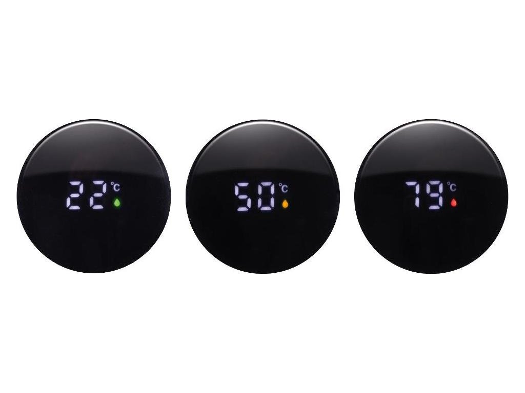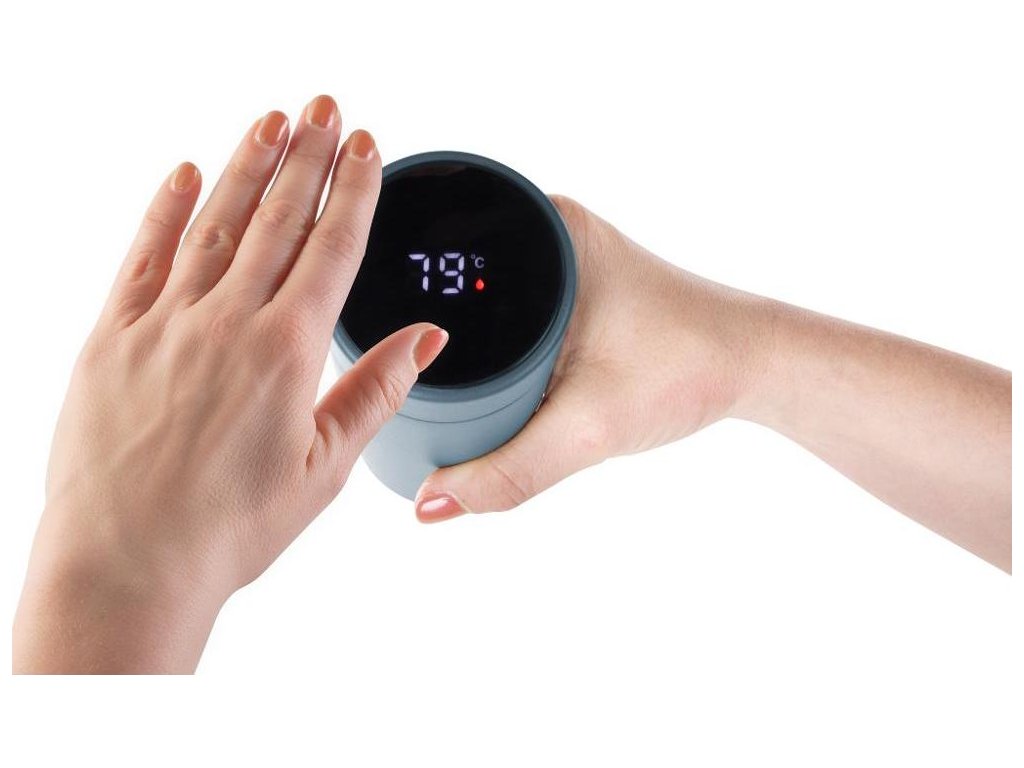 Termoska z vysoce kvalitní nerezavějící oceli a s integrovaným digitálním teploměrem ve víčku.Díky digitálnímu teploměru můžete snadno a rychle zjistit aktuální teplotu svého nápoje pouhým dotykem.