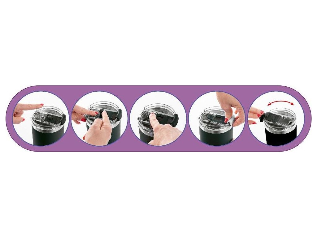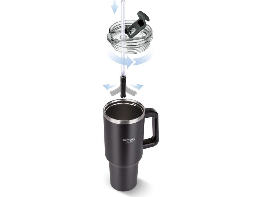 Jeho výhodou je ergonomická rukojeť a praktické brčko uvnitř hrnku, které lze snadno zasunout, když se nepoužívá. Nápoje lze z hrnku konzumovat nejen přes brčko, ale i zavírací otvor ve víčku.
