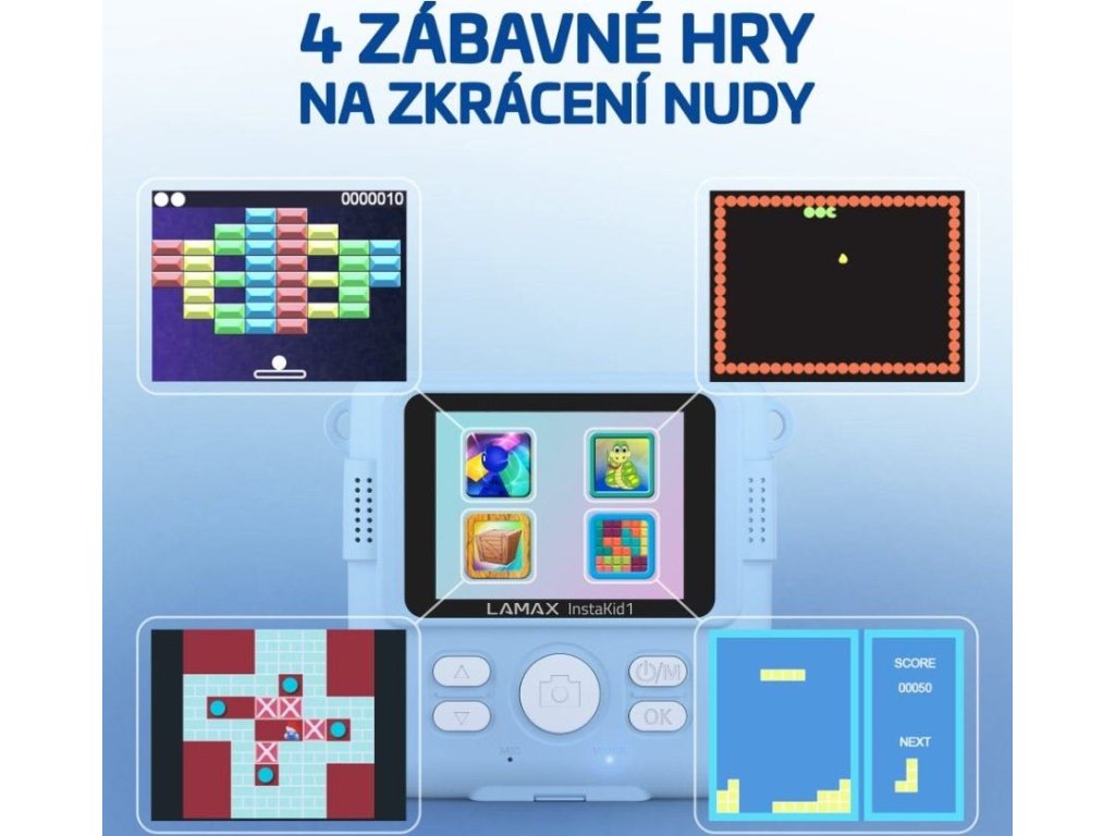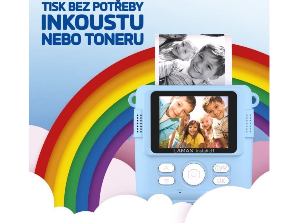 Zachyť všechny všední i nevšední okamžiky s kamarády a rodinou, LAMAX InstaKid1 z tebe udělá fotografa každé párty. Dětský foťák okamžitě fotky vytiskne, a přitom potřebuješ jen roličku termopapíru, žádné tonery ani inkoust. Na velkém barevném displeji perfektně vidíš celou kompozici, a když chceš být fakt originální a fotku oživit, využij zabudované filtry, efekty a rámečky. Klidně to všechno vyzkoušej na selfie, který si s pomocí zrcátka na přední straně v pohodě uděláš. Super fotky pořídíš i při horším světle díky přísvitu na přední straně kamery. Když nechceš tisknout, ulož si fotky na microSD kartu podobně jako video, který foťák taky umí natáčet. Čekání na správný záběr ti zpříjemní hry, na výběr máš ze čtyř. Foťák má bohatou výbavu, vše je v češtině a vybrat si můžeš mezi růžovým a modrým provedením.