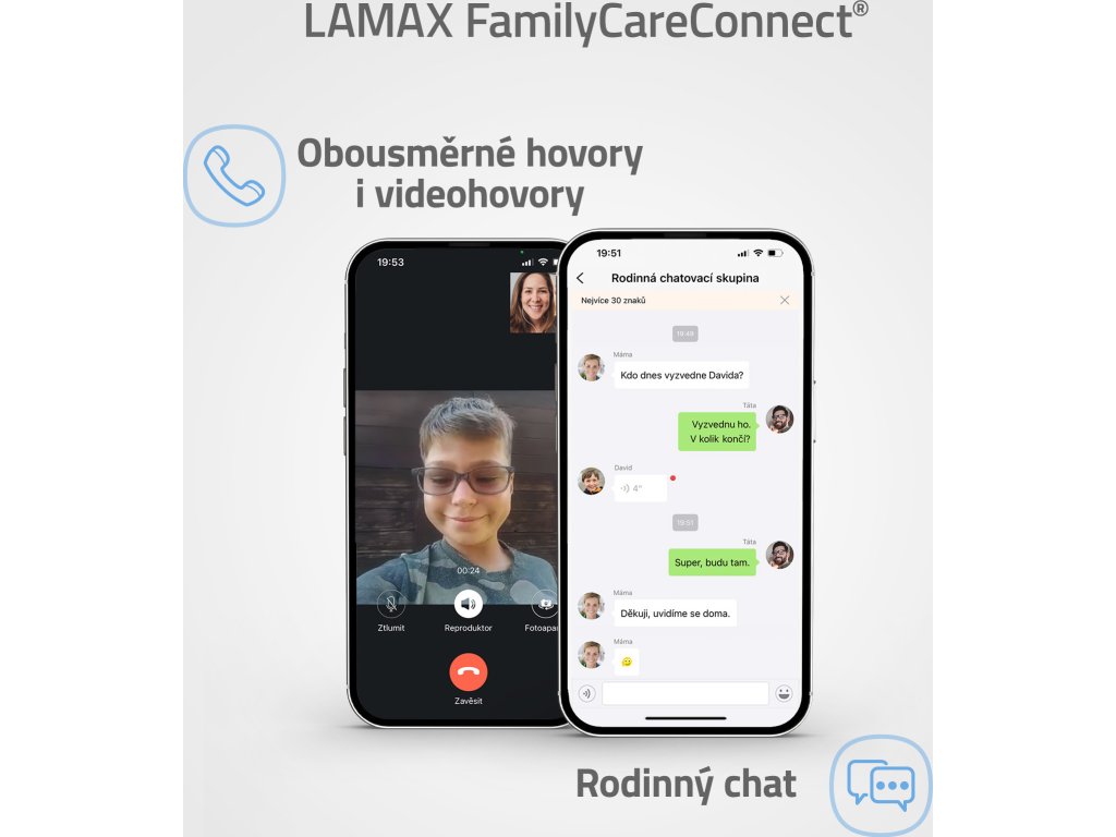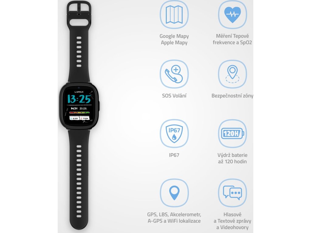 Rodičům, kteří chtějí své dítě uchránit před neustálým díváním se do telefonu, ale zároveň s ním být ve spojení, nabízí LAMAX řešení na ruku. Již čtvrtá generace chytrých hodinek WatchY4 Plus je vybavena možností volat, posílat přednastavené SMS, chatovat a díky velkému displeji s krycím sklíčkem Gorilla Glass a vestavěné kameře si užijete i videohovory. Navíc vypadají fakt cool, takže je dítě bude hrdě nosit a nehrozí jejich zapomenutí doma nebo odložení do tašky. Díky technologii LAMAX PinPoint® pro určování polohy získáte přesnější lokalizaci hodinek než u konkurenčních produktů. Bezpečnostní zóny poskytují rodičům klid, protože poznají a notifikují, když se dítě dostane mimo jejich hranice. Kdyby se dostalo do potíží, stačí podržet SOS tlačítko a dojde ke kontaktování zvoleného rodiče. Krokoměr je super věc, stane se výzvou pro dítě k aktivitě, funkce pro měření srdečního tepu a okysličení krve ohlídá kondici. Zapomnětlivce pohlídají nastavitelné připomínky které dají vědět, kde mají být. Výmluvy na vybitou baterii nebudou stačit, ta vydrží totiž až 120 hodin. Krytí IP67 zajišťuje hodinkám voděodolnost, aby jim neublížil třeba déšť.
