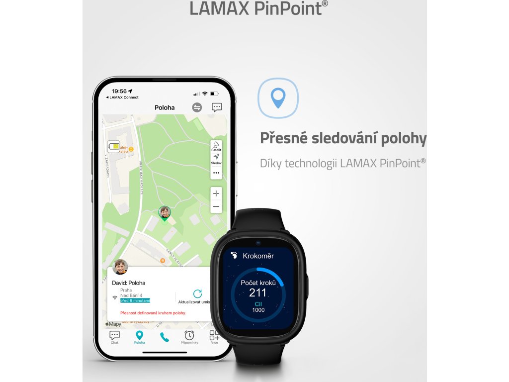 LAMAX WatchY4 Plus umí díky technologii PinPoint® určit polohu dítěte mnohem přesněji než jiné modely, k triangulaci totiž využívají GPS, LBS, A-GPS, Wi-Fi a Akcelerometr.