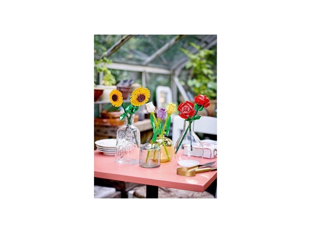 Zkombinujte s dalšími stavebnicemi – LEGO® slunečnice můžete vystavit samotné nebo zkombinovat s růžemi (40460), tulipány (40461) nebo kyticí (10280). Jednotlivé stavebnice se prodávají samostatně