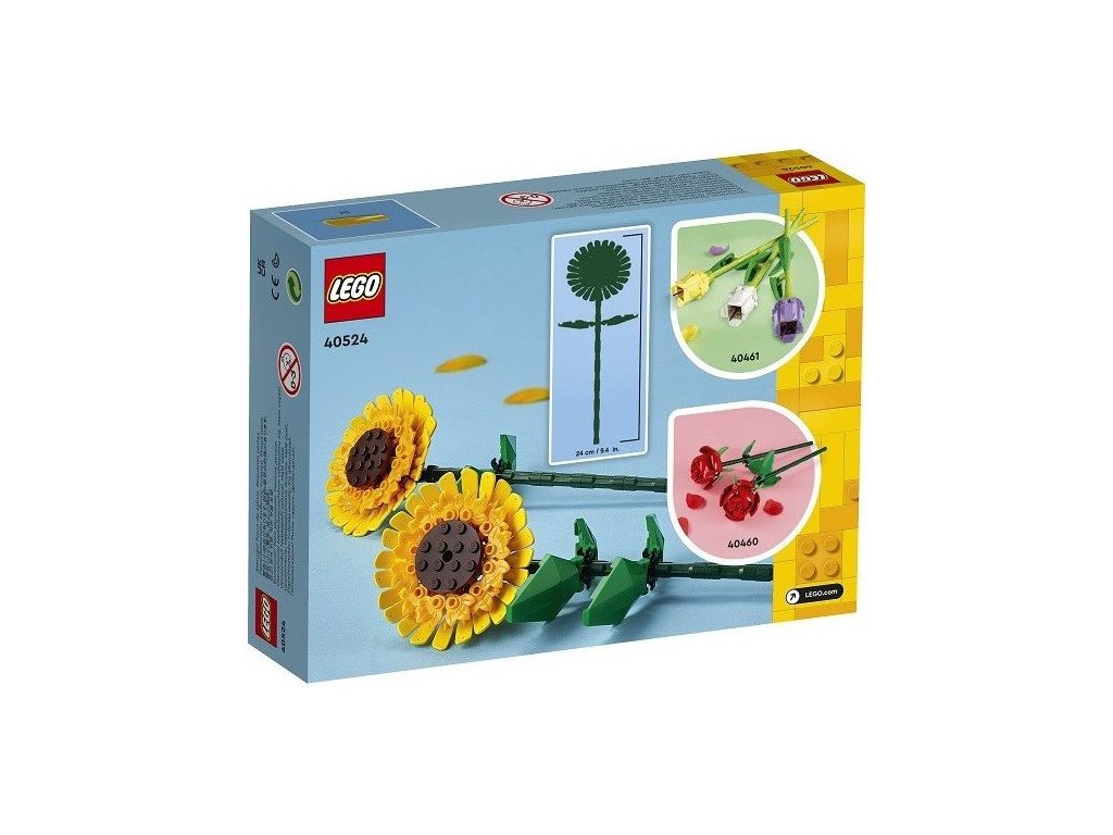 Slunečnice každý pokoj rozjasní svým radostným optimismem. A vy si nyní můžete tyto milované květiny postavit v podobě pestrého modelu LEGO® (40524). Umístěte poutavé slunečnice na výstavku nebo je zkombinujte s modely LEGO růže (40460), tulipánů (40461) nebo celou kyticí (10280) a vytvořte si okouzlující svazek (jednotlivé stavebnice se prodávají samostatně). Jedná se také o skvělý dárek ke Dni matek nebo jakékoli jiné příležitosti pro kamaráda nebo milovanou osobu.Postavte si výstavní model slunečnic – Rozjasněte interiér výstavním modelem LEGO® slunečnic (40524). V sadě na vás čekají 2 květy slunečnic s přizpůsobitelnými zelenými stonky a listy