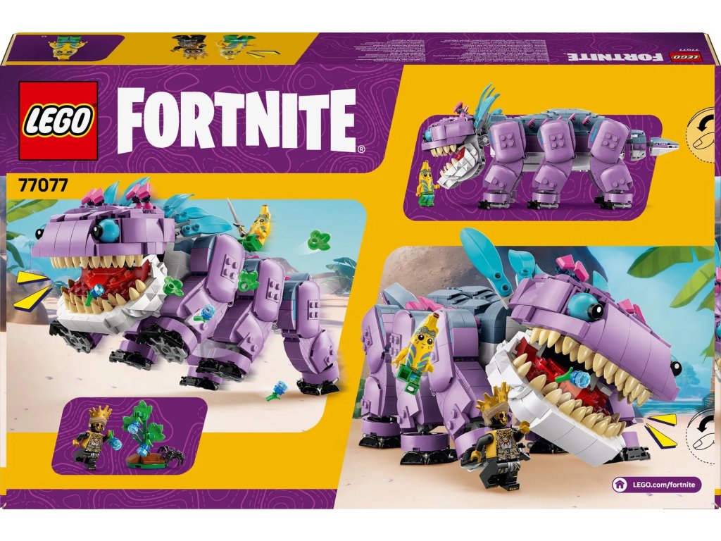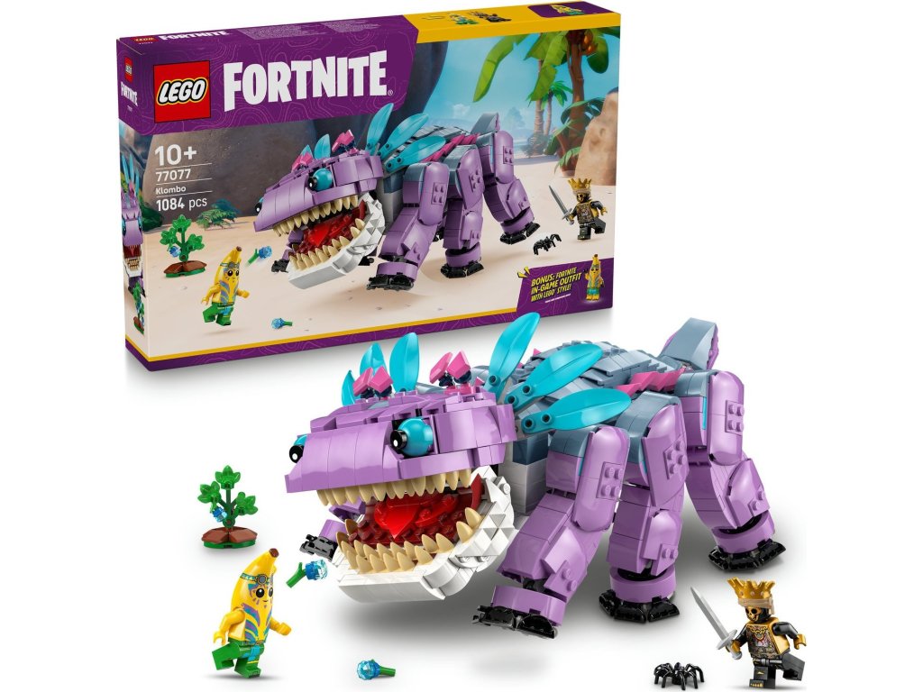 Fanoušci a gameři od 10 let si se stavebnicí LEGO® Fortnite® (77077) Klombo postaví kultovní postavu LEGO® Fortnite. Klombo je velké stvoření z videohry LEGO Fortnite a díky této stavebnici si ho holky a kluci můžou postavit z kostek LEGO. Děti siužijí spoustu zábavy při stavění modelu podle videohry Fortnite a objeví všechny jeho skvělé detaily, včetně pohyblivých nohou, otevírající tlamy a otáčejícího se ocasu. Součástí stavebnice je také malý keř Klomberry s odnímatelným ovocem Klomberries. Děti si tak můžou hrát na to, že Klomba vyruší, aby se naštval, a pak ho nakrmí ovocem, aby si Klomba udobřily. Stavebnice obsahuje také minifigurky Island Adventure Peelyho a Ora, které lze připevnit na záda Klomba a užít si s nimi tvořivé hraní na postavy. Tato úžasná stavebnice zvířátka poslouží jako krásný dárek pro gamery všech věkových kategorií a obsahuje skvělý digitální bonusový předmět. Hráči naskenují QR kód v návodu ke stavění a odemknou si outfit pro Island Adventure Peelyho ve videohře LEGO Fortnite. Stavebnice obsahuje 1084 dílků.Doplňkové parametry