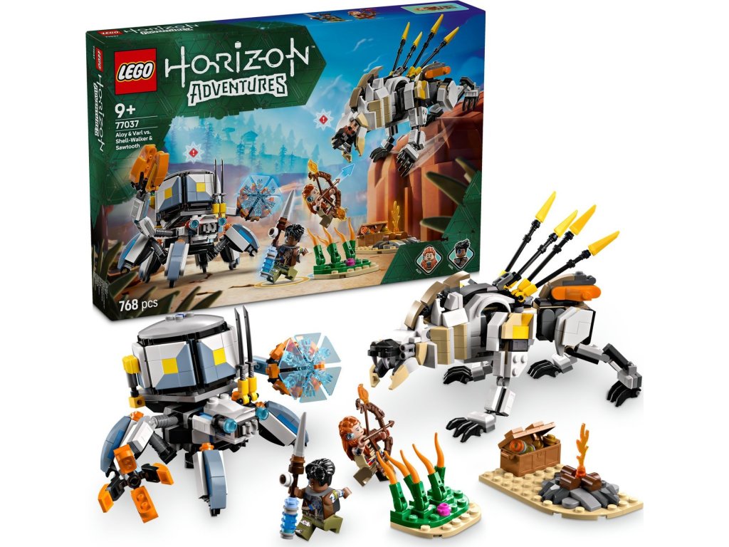 Aloy a Varl vs. Shell-Walker a SawtoothSběratelské figurky z videohry LEGO® Horizon Adventures™