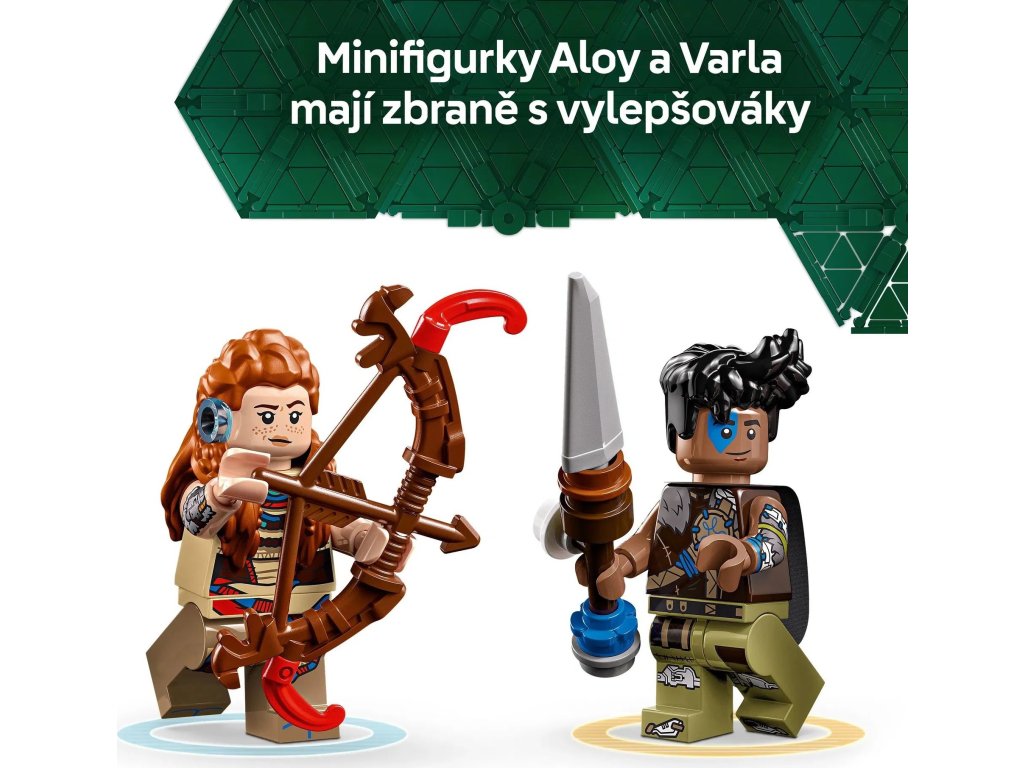 Sběratelská fantasy herní stavebnice LEGO® Horizon Adventures™ 77037 potěší děti od 9 let. Inspirovaná je videohrou LEGO Horizon Adventures. Obsahuje 2 minifigurky, a to Aloy a jejího věrného spojence Varla. Aloy disponuje lukem, zatímco Varl oštěpem. Obě zbraně nabízí vylepšení, které na ně mohou děti přidat a aktivovat útok ohněm, chladem či šokem.