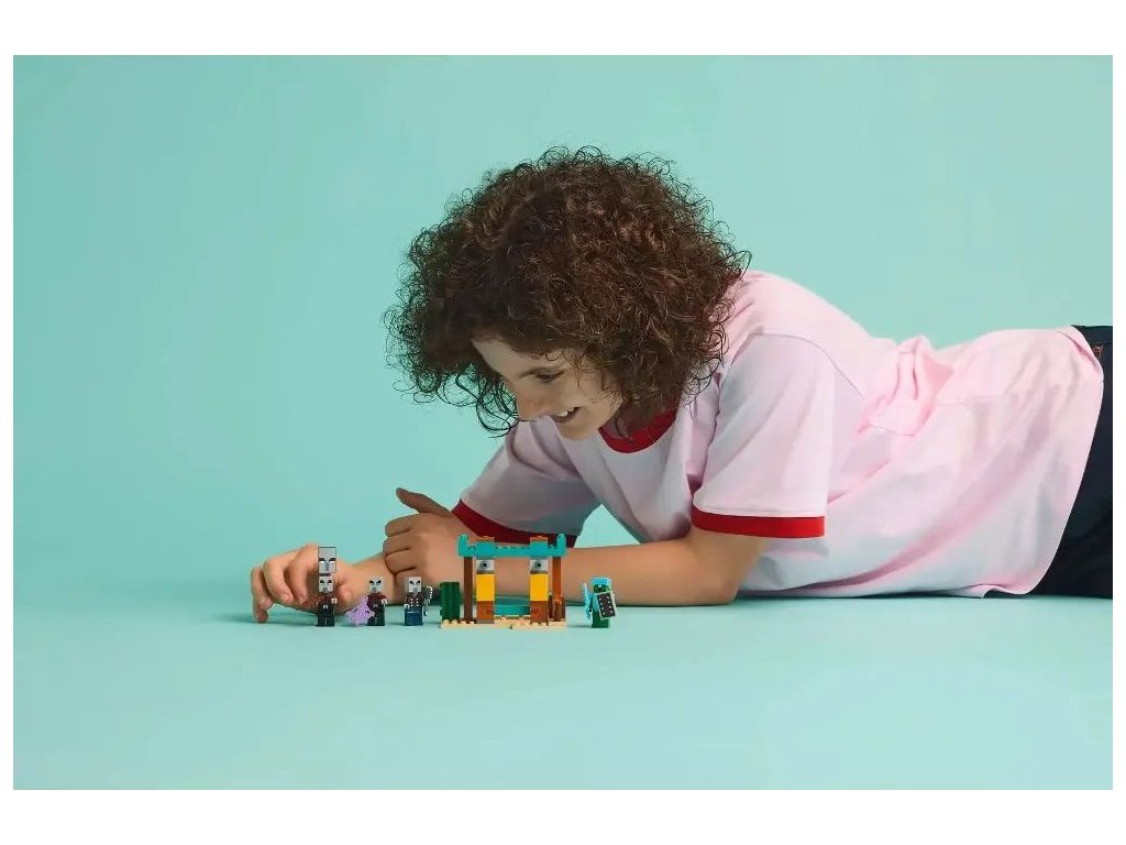 Hráči hry Minecraft® si užijí hodiny zábavy s touto malou stavebnicí LEGO® pro děti od 7 let. Pouštní hlídka zákeřníků (21267) se 4 figurkami LEGO Minecraft, zábavnými funkcemi a autentickými doplňky je miniaturní hračka s mega akcí ve stylu Minecraftu. Děti se ocitnou na pouštní základně z Minecraftu a vžijí se do role kaktusového rytíře s diamantovým brněním, štítem a mečem. Když dorazí 3 figurky zákeřníků, které chtějí ukrást poklad, děti musí základnu bránit. Součástí stavebnice jsou rakety, které děti odpálí pohybem prstu, řada zbraní a sud, ve kterém se ukrývá poklad. Pro ještě větší digitální zábavu umožňuje aplikace LEGO Builder dětem přibližovat a otáčet modely ve 3D pomocí jejich zařízení.Doplňkové parametry