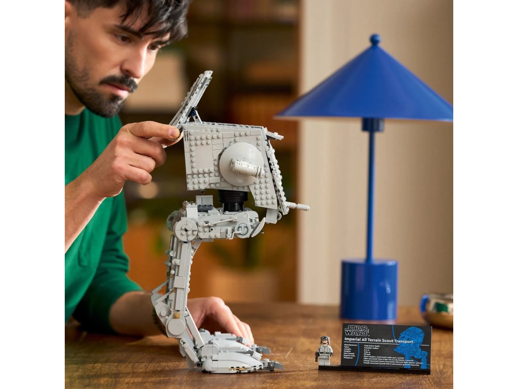 Model si nakonec upravte otáčením „hlavy“ AT-ST, otevíráním a zavíráním oken pro střelce a miřte laserovými děly. Toto sběratelské vozidlo z kostek je vybaveno cedulkou s informacemi a unikátní minifigurkou řidiče AT-ST LEGO Star Wars (s potiskem erbu Impéria na pažích), které tento poutavý výstavní kousek dovedou k dokonalosti.