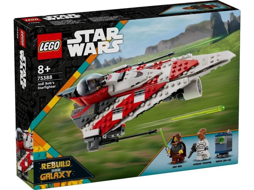 Seznamte děti s oblíbenou tajemnou postavou ze stavebnice LEGO® Star Wars™ z roku 2002 díky sadě Stíhačka Jedie Boba (75388). Tato stavebnice LEGO Star Wars, představuje skvělý narozeninový dárek pro kluky, holky a fanoušky od 8 let. Součástí je stíhačka s otevíracím kokpitem, 2 pružinovými vystřelovači a zatahovacím podvozkem. Pusťte se do strhujícího dobrodružství se 2 minifigurkami LEGO Star Wars: Jediem Bobem a vojákem Ackbarem, a k tomu navíc figurkou LEGO droida Serva (SR-V0) ze speciálu LEGO Star Wars: Rebuild the Galaxy od Disney+. Ještě více zábavy na vás čeká díky doplňků, jako je světelný meč Jedie Boba, který lze připnout k základně vesmírné lodi z kostek, krabice modrého mléka a banán, které lze uložit do nákladového prostoru. Tato stavebnice se skvěle hodí ke stavebnicím Temný Falcon (75389) a Stíhačka TIE a X-wing – kombinovaná stavebnice (75393) (prodávají se samostatně), které obsahují také vozidla a postavy ze speciálu LEGO Star Wars: Rebuild The Galaxy.Doplňkové parametry