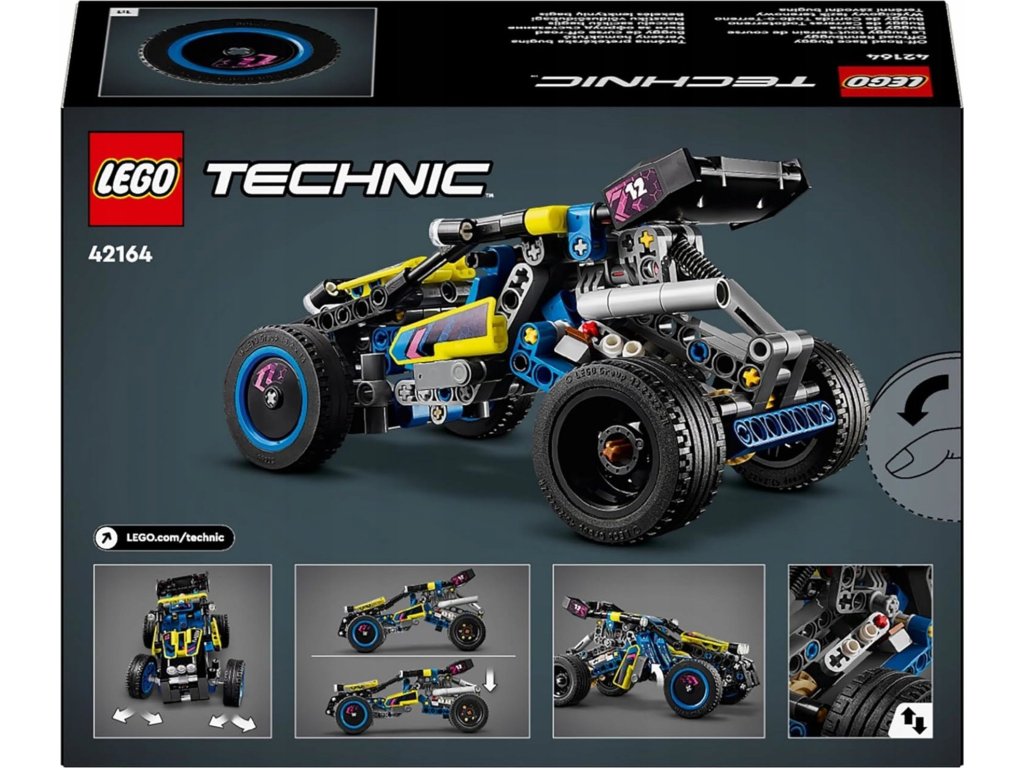 Děti od 8 let si s touto úchvatnou stavebnicí vozidla užijí pořádnou legraci. Procvičí si stavitelské dovednosti při skládání modelu LEGO® Technic (42164) Terénní závodní bugina – ale u stavění zábava nekončí! Po sestavení model otestují. Bugina se pyšní řadou autentických detailů inspirovaných skutečnými závodními buginami, jako jsou zadní tlumiče, pohyblivý 4válcový motor a posilovač řízení. Tato stavebnice je skvělým dárkem pro děti, které milují vozidla a závodní auta.Stavebnice LEGO Technic kombinují realistické detaily s interaktivními modely a seznámí mladé stavitele z kostek LEGO se světem techniky. Malé děti se mohou těšit na zábavné stavitelské dobrodružství s aplikací LEGO Builder, ve které si lze přibližovat a otáčet modely ve 3D a sledovat postup.