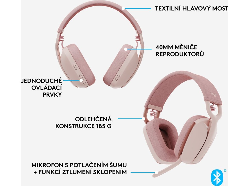 Vyjádřete svůj smysl pro styl a vychutnejte si pohlcující zvuk při práci a hraní s bezdrátovými sluchátky s mikrofonem Logitech Zone Vibe 100. Díky výkonným 40mm reproduktorům s hlubokými, plnohodnotnými basy, ostrými výškami a zvukem s nízkým zkreslením vdechne tato bezdrátová náhlavní souprava Logitech Zone vašim schůzkám život. Tato lehká prodyšná sluchátka váží pouhých 185 gramů a jsou dostatečně pohodlná, abyste je mohli nosit celý den, s náušníky z měkké paměťové pěny a nastavitelným designem. Bezdrátová sluchátka Vibe 100 Bluetooth s mikrofonem umožňují snadné pořádání virtuální schůzek z domova díky kompatibilitě s rozšířenými videoplatformami, praktickým ovládacím prvkům na sluchátku a mikrofonu s funkcí ztlumení sklopením a potlačením šumu. Regulujte odposlech, úroveň mikrofonu a ekvalizér pro dosažení ideálního poslechu pomocí aplikace Logi Tune Desktop nebo aplikace pro mobilní zařízení. Udržujte svá zařízení aktuální a připojujte se ke schůzkám pouhým kliknutím. Užijte si svobodu pohybu a zůstaňte připojeni ke svým zařízením pomocí sluchátek s vícebodovou technologií Bluetooth s dosahem až 30 metrů, dobou hovoru 18 hodin (2) a dobu poslechu 20 hodin. Vyrobeno z 25 % recyklovaných plastů (5) – tato sluchátka Logi na uši s Bluetooth tak budete moci bez výčitek používat.(1) Dosah bezdrátového připojení se může lišit v závislosti na podmínkách okolního prostředí a používání