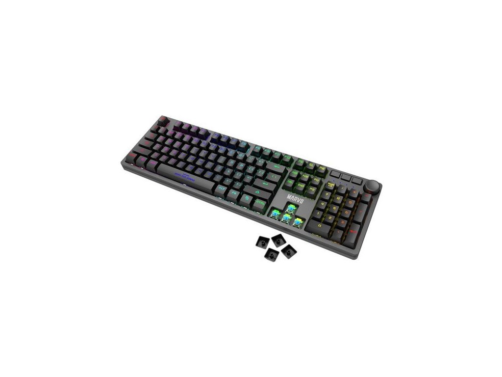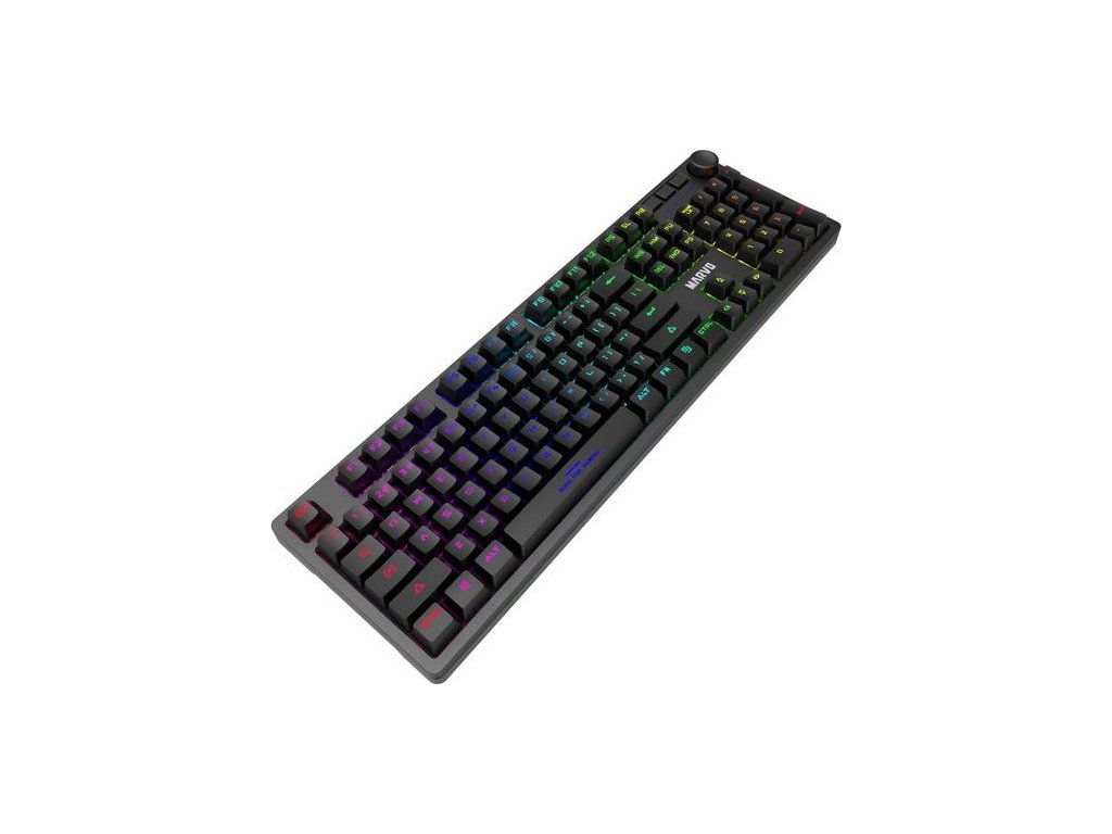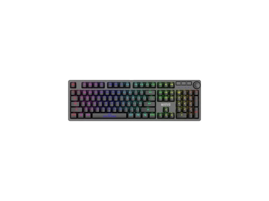 Klávesnice má 104 klávesy + 3 klávesy k ovládání médií a kolečko k regulaci hlasitosti. Díky tomu vám umožní přizpůsobit si audio za chodu a plně se soustředit na hru. Změňte svůj zážitek ze hry jediným stiskem.