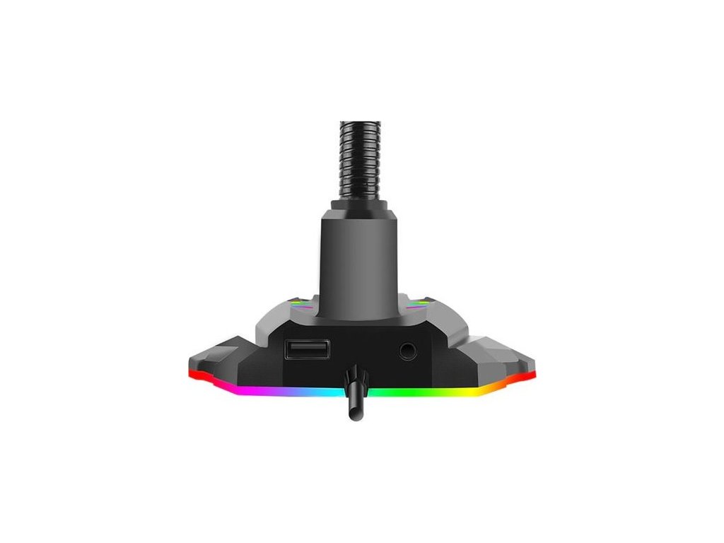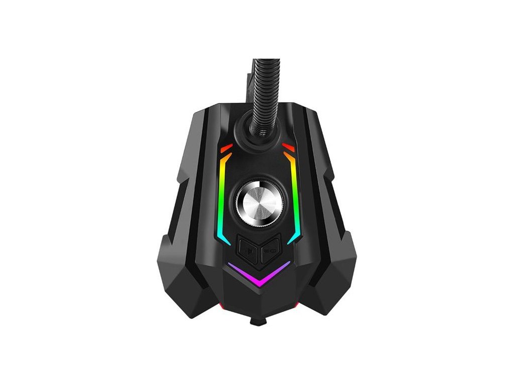 Nejlepší výbava herního místa je ta, která svítí. Mikrofon má zabudované rainbow podsvícení ve své základně, ale také na horní části kolem tlačítek pro ovládání. Během hry tak ovládací tlačítka snadno najdete.