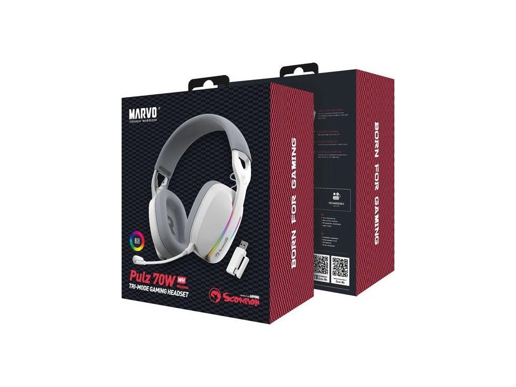 Hledáte sluchátka, která vám zajistí perfektní zážitek z hudby a her? Pak už nehledejte! Sluchátka Marvo Pulz 70W s náhlavní konstrukcí a inovativní funkcí Tri-mode vám toto všechno zajistí. Vyberte si z 2.4 GHz bezdrátového připojení pro stabilní a nízko-latenciální signál, Bluetooth 5.3 pro bezdrátové streamování z mobilního zařízení, nebo klasického 3.5mm jacku (4-pin) pro kompatibilitu s počítači a herními konzolemi.Odnímatelný mikrofon