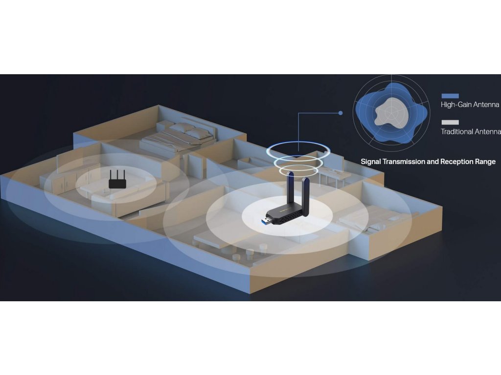 Adaptér je díky svému kompaktnímu designu je vhodný pro stolní počítače i notebooky. Stabilní výkon, vysoká přenosová rychlost a široké pokrytí dělají z tohoto zařízení ideální řešení pro uživatele hledající rychlé, spolehlivé a flexibilní bezdrátové připojení.