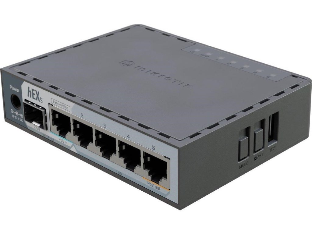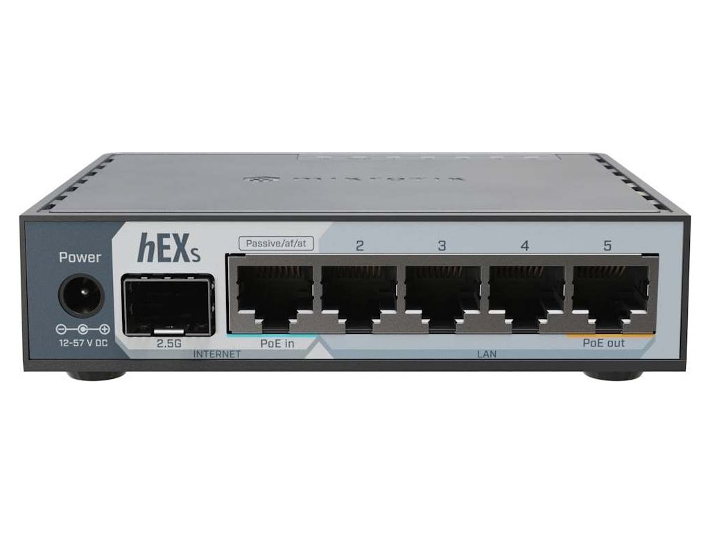 Popis produktuMikroTik hEX S je kompaktní, výkonný a cenově dostupný drátový router, který je ideální volbou pro chytré domácnosti nebo menší kanceláře. Zařízení nabízí 5 Gigabitových ETH portů, přičemž Ether1 podporuje PoE-in a Ether5 PoE-out, což umožňuje napájení dalšího zařízení přímo z routeru. Výstupní napětí na PoE-out portu odpovídá vstupnímu napájení routeru. Hlavní předností je ale 2.5G SFP port, díky kterému lze plně využít potenciál rychlého připojení – například k NAS serveru nebo optické síti poskytovatele. Router lze napájet přes DC konektor 12-57V, přes PoE-in v rozmezí 18-57V nebo standardu 802.3af/at.