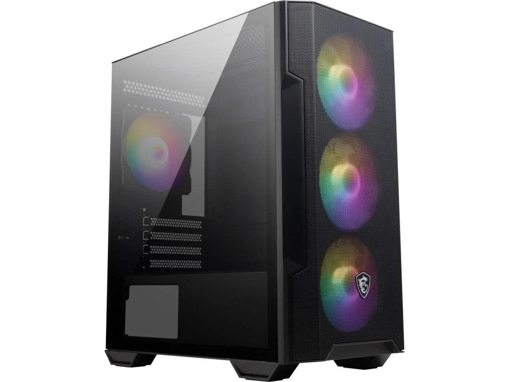 MSI MAG FORGE M100RKvalitní počítačová skříň formátu Micro Tower nabízí dvě 2,5", jednu 2,5"/3,5" a jednu 3,5" pozici pro SSD a pevné disky. Na horním panelu se nachází dva porty USB 2.0, jeden USB 3.0, sluchátkový výstup a audio vstup pro mikrofon. Vybavena je čtyřmi 120 mm ventilátory s ARGB podsvícením, které spolu s perforovaným čelním panelem zajišťují dostatečné proudění vzduchu. Ve skříni je dostatek prostoru pro chladič CPU do výšky až 160 mm a grafickou kartu o délce až 300 mm. Skříň disponuje průhlednou bočnicí a je dodávána bez zdroje. Důmyslné řešení umožňuje pohodlné umístění až 240 mm dlouhého výměníku vodního chlazení na přední i horní straně. Součástí skříně je také magnetický prachový filtr.
