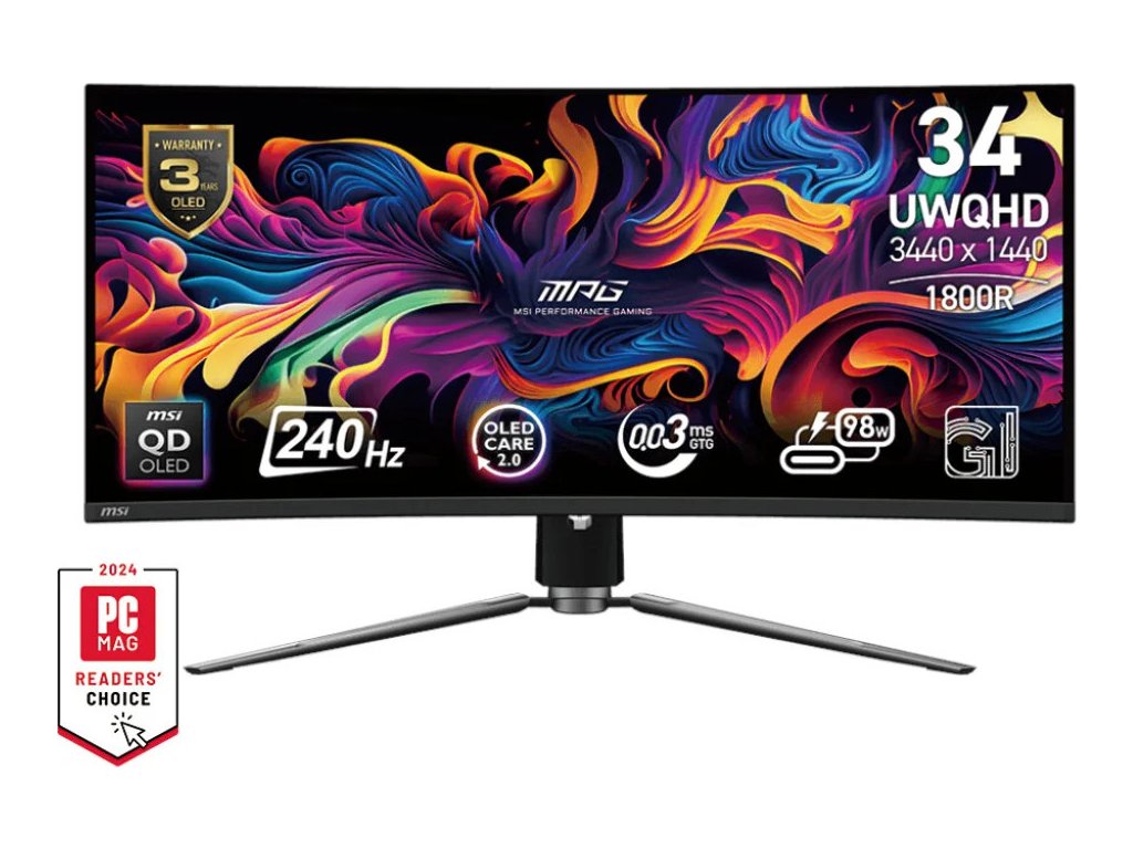 MSI MPG 341CQPX QD-OLEDVizualizujte své vítězství s herním monitorem MPG 341CQPX QD-OLED. Může se pochlubit zakřiveným panelem QD-OLED s rozlišením 3440 x 1440 1800R, obnovovací frekvencí 240 Hz a rychlou dobou odezvy 0,03 ms. Certifikace VESA pro ClearMR 13000 a DisplayHDR True Black 400 zajišťuje výjimečně živý obraz a zmírňuje rozmazání pohybu. OLED Care 2.0 snižuje riziko vypálení OLED. Pro konzolové hráče poskytuje MPG 341CQPX QD-OLED porty HDMI 2.1 s šířkou pásma 48 Gb/s, podporou 120 Hz, VRR a ALLM.