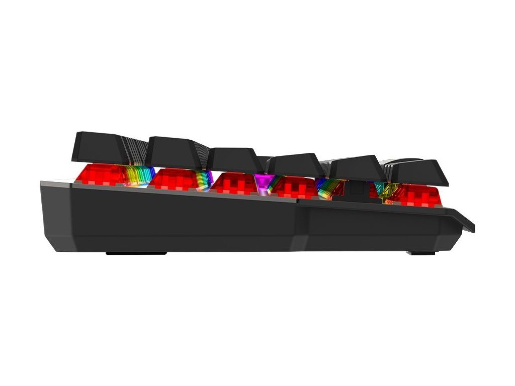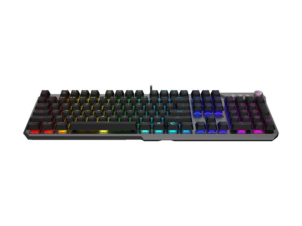 Klávesnice se pyšní robustní konstrukcí s vrchním panelem z leteckého hliníku a ergonomickým designem s plovoucími klávesami. Exkluzivní osmiúhelníkové klávesy zajišťují přesné ovládání a chytrý ovladač hlasitosti umožňuje intuitivní nastavení zvuku během hraní. S možností uložení 3 profilů přímo v klávesnici a přizpůsobitelným RGB podsvícením Mystic Light nabízí personalizaci pro každého hráče.