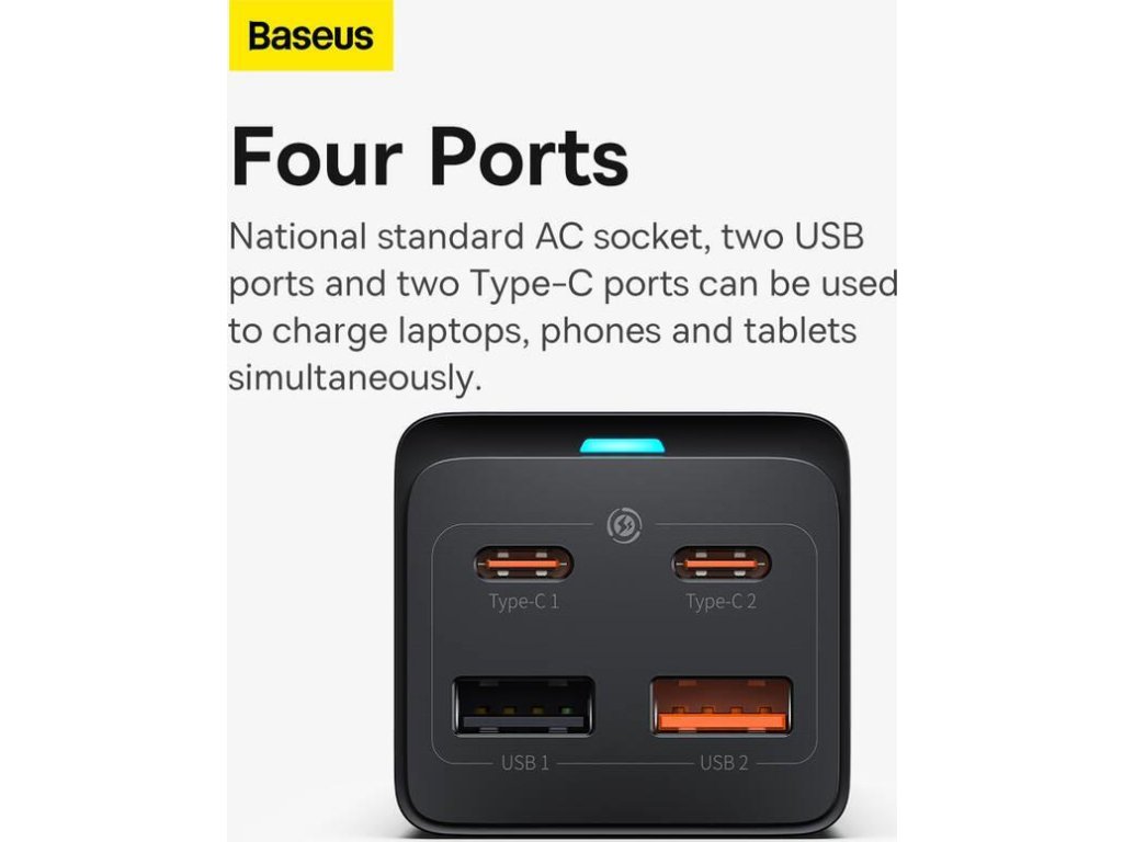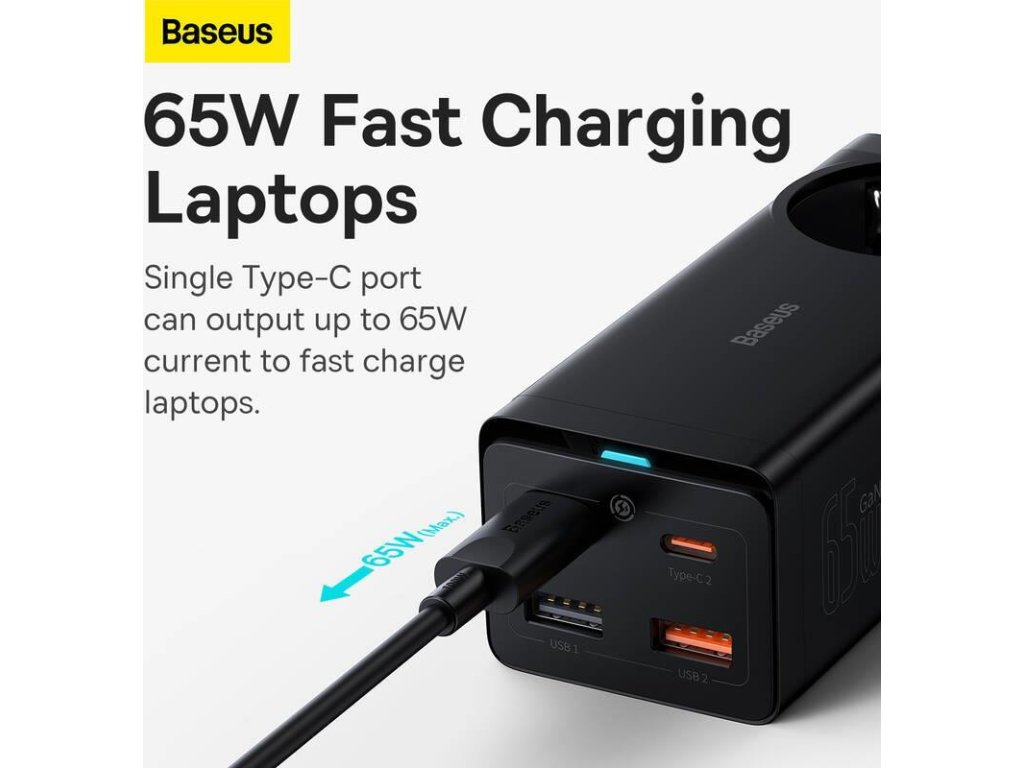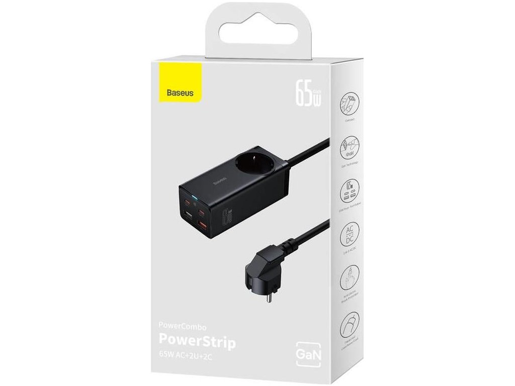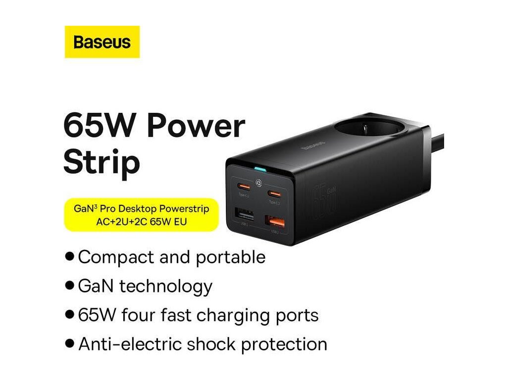 Nabíjecí stanice Baseus GaN3 Pro 65W 1xzásuvka, 2xUSB-C, 2xUSB černá