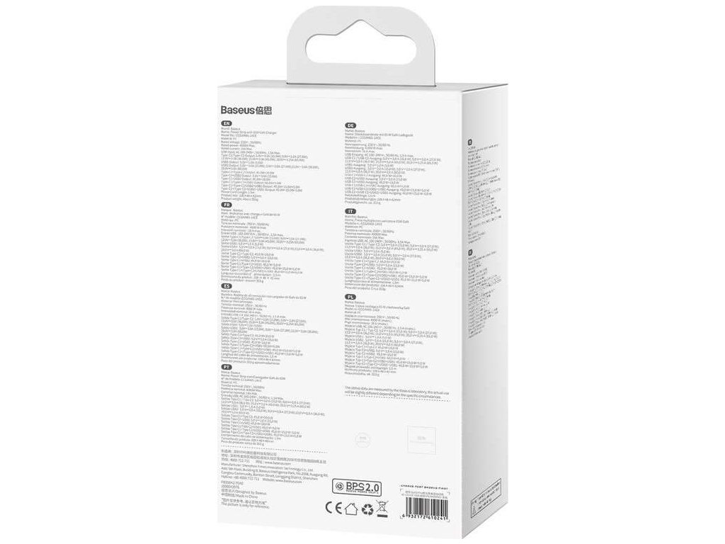 Nabíječka Baseus představuje moderní, výkonné a kompaktní řešení pro nabíjení více zařízení současně. Díky pokročilé technologii nitridu galia (GaN3) se podařilo snížit rozměry a hmotnost nabíječky až o 30 %, přičemž si zachovává vysoký výkon a účinnost. Disponuje čtyřmi nabíjecími porty (dva USB-C a dva USB-A) a klasickou síťovou zásuvkou AC 230 V 50 / 60 Hz, která umožňuje napájení notebooku, monitoru, tiskárny nebo jiného elektronického zařízení. Podporuje nejmodernější standardy rychlého nabíjení, včetně Power Delivery PD3.0, Quick Charge QC4.0+, PPS, Samsung AFC a Huawei Super Charge, což zajišťuje kompatibilitu s širokou škálou zařízení.Jednou z hlavních výhod je inteligentní řízení nabíjení, na základě těchto dat nabíječka automaticky upravuje výstupní napětí a proud, což optimalizuje nabíjecí proces a prodlužuje životnost baterií. Baseus GaN3 Pro je navržen s důrazem na bezpečnost a odolnost. Obsahuje řadu ochranných prvků, které chrání připojená zařízení před přebíjením, přepětím, přehřátím, nadproudem, zkratem a elektromagnetickým rušením. Použité nanotechnologie BCT napomáhají rychlému odvádění tepla, což zabraňuje přehřívání při dlouhodobém provozu. Součástí balení je kabel USB-C na USB-C o délce 1 m s výkonem 100 W, který umožňuje rychlé nabíjení i náročnějších zařízení, jako jsou MacBooky nebo moderní ultrabooky.