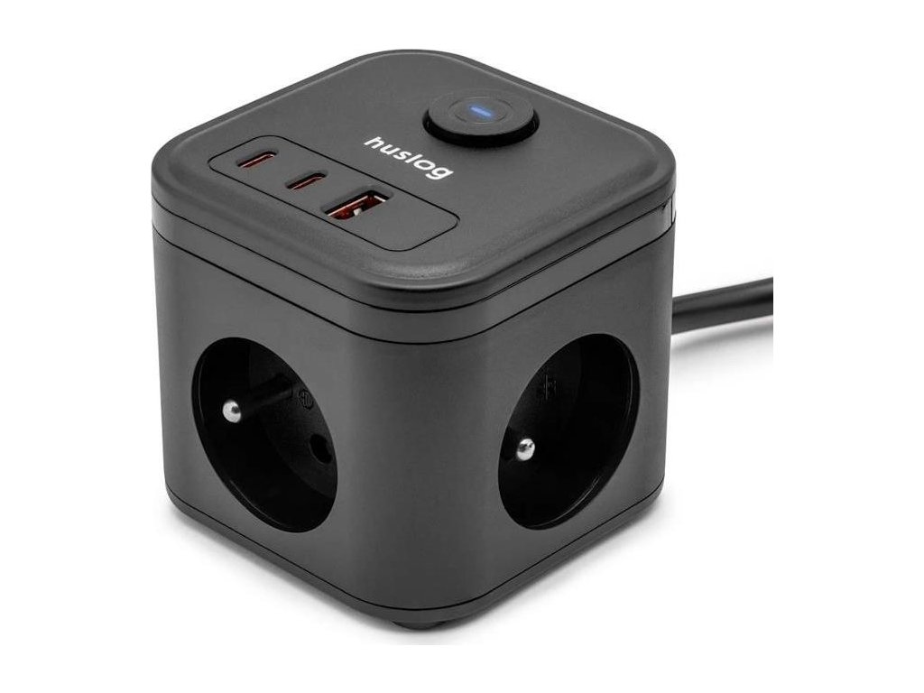 Nabíjecí stanice Huslog 20W 3xzásuvka, 2xUSB-C, 1xUSB černá