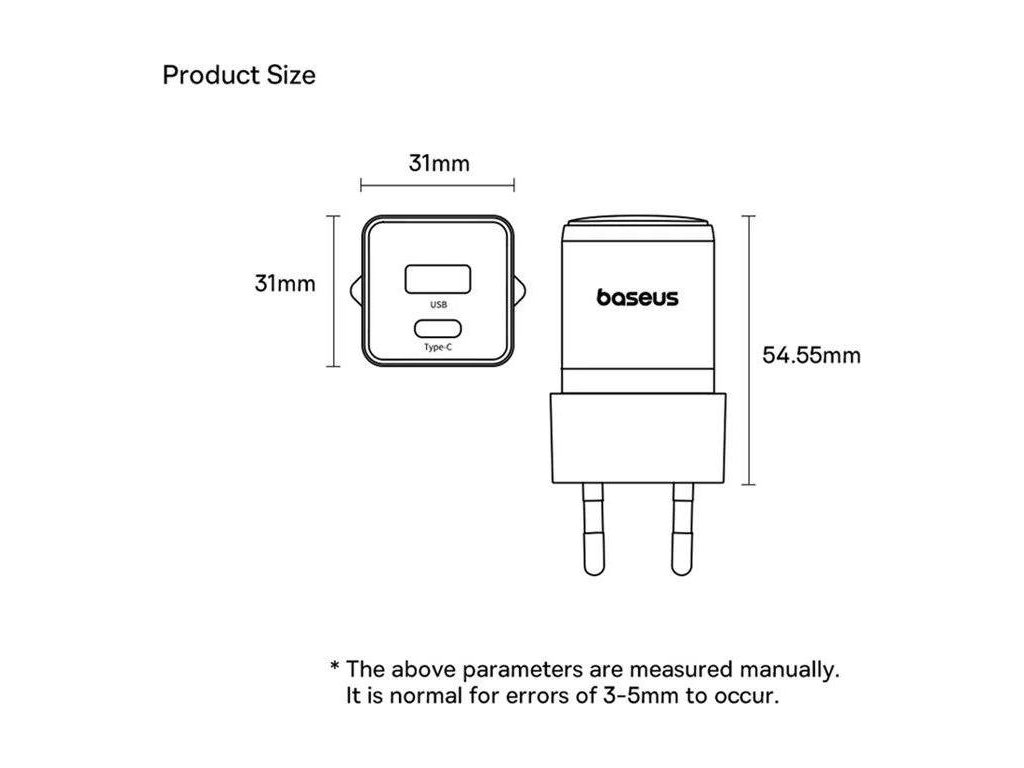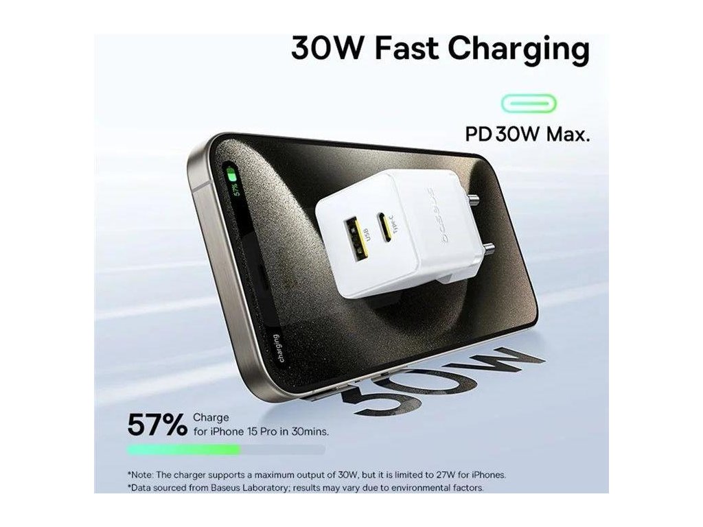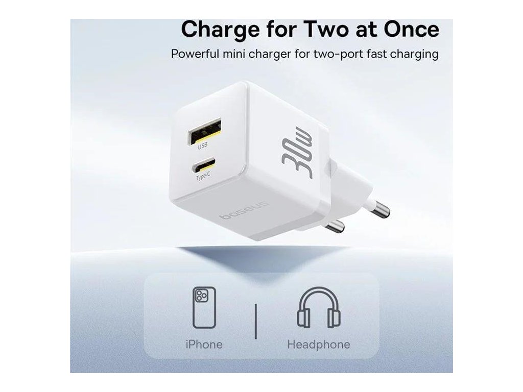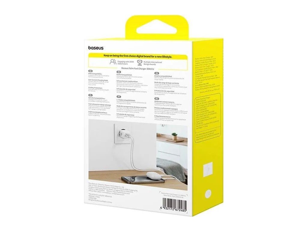 Nabíječka do sítě Baseus Palm 30W, 1xUSB, 1xUSB-C bílá