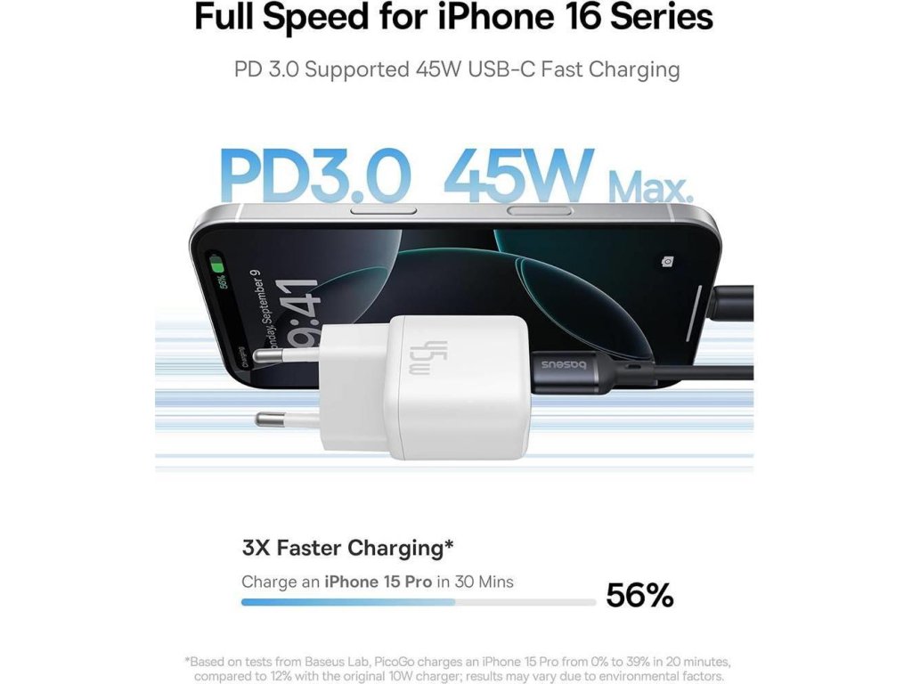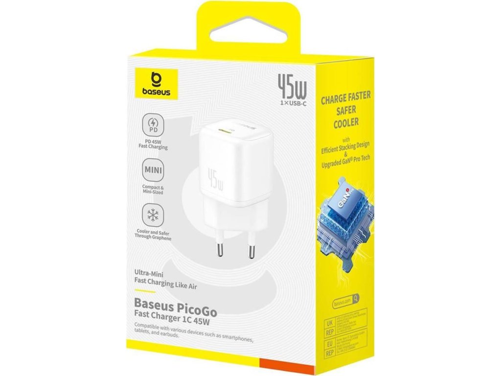 Nabíječka do sítě Baseus PicoGo 45W, 1xUSB-C bílá
