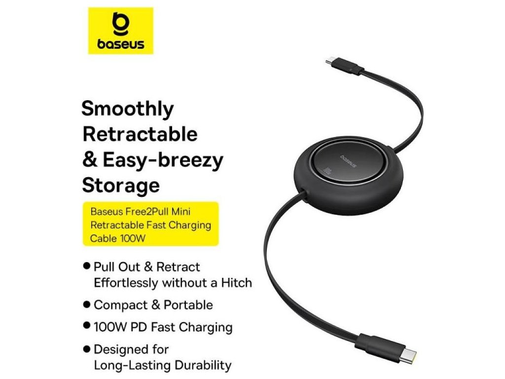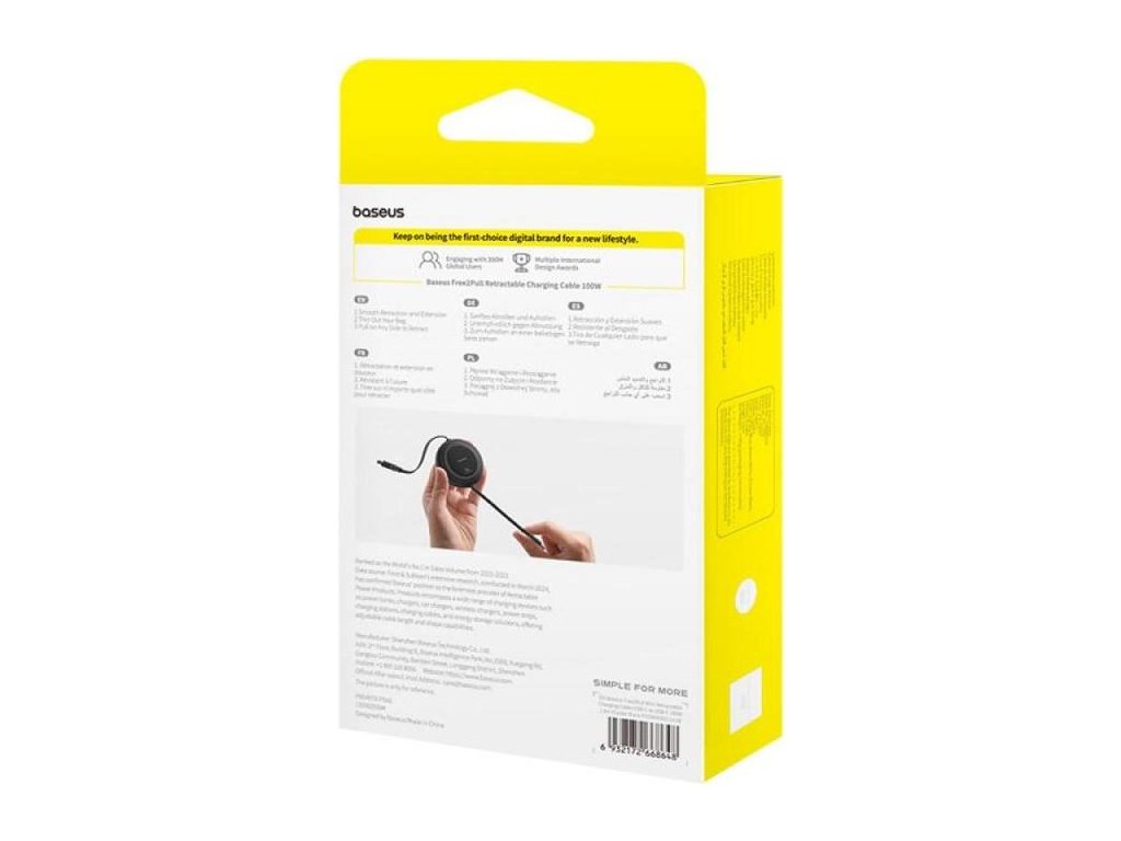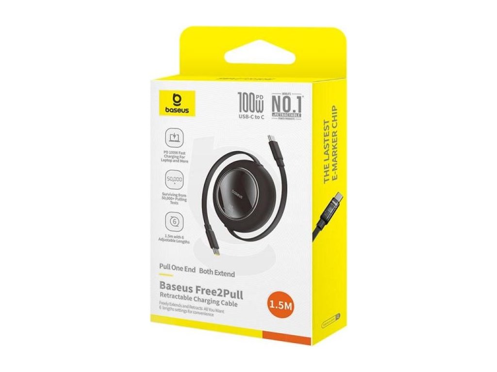 Navíjecí kabel Baseus Free2Pull USB-C/USB-C s nastavitelnou délkou až 1m 100W černý