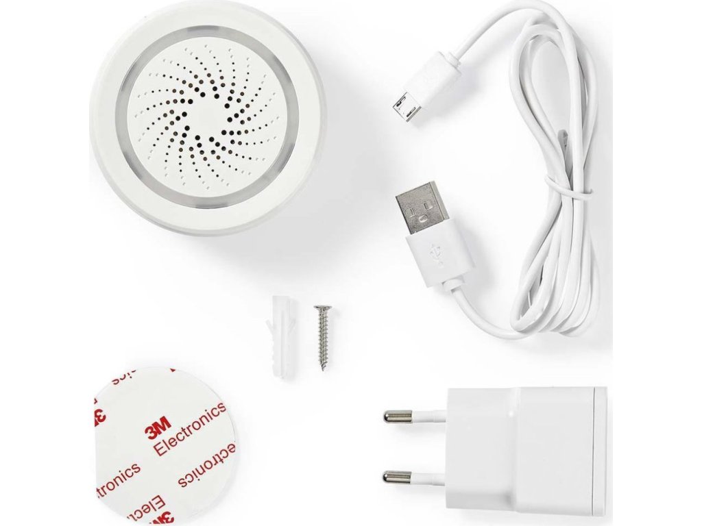 Nedis WIFISI10CWTChytrá siréna vhodná zejména jako rozšíření domovního zvonku či jako zvuková signalizace k pohybovému senzoru. Na výběr je z osmi různých zvuků, které lze v aplikaci Nedis SmartLife přiřadit jednotlivým senzorům nebo například k denní době. Pro tyto účely siréna disponuje bezdrátovým připojením Wi-Fi. Kromě zvuku o síle 85 dB potěší také světelný doprovod v podobě blikajících LED diod. Napájení je realizováno skrze micro USB port.