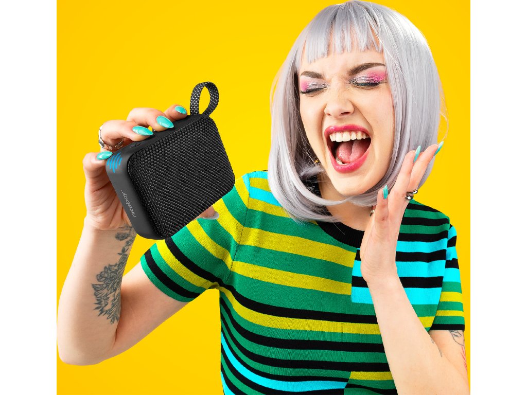 • Malý přenosný reproduktor s propracovaným zvukem