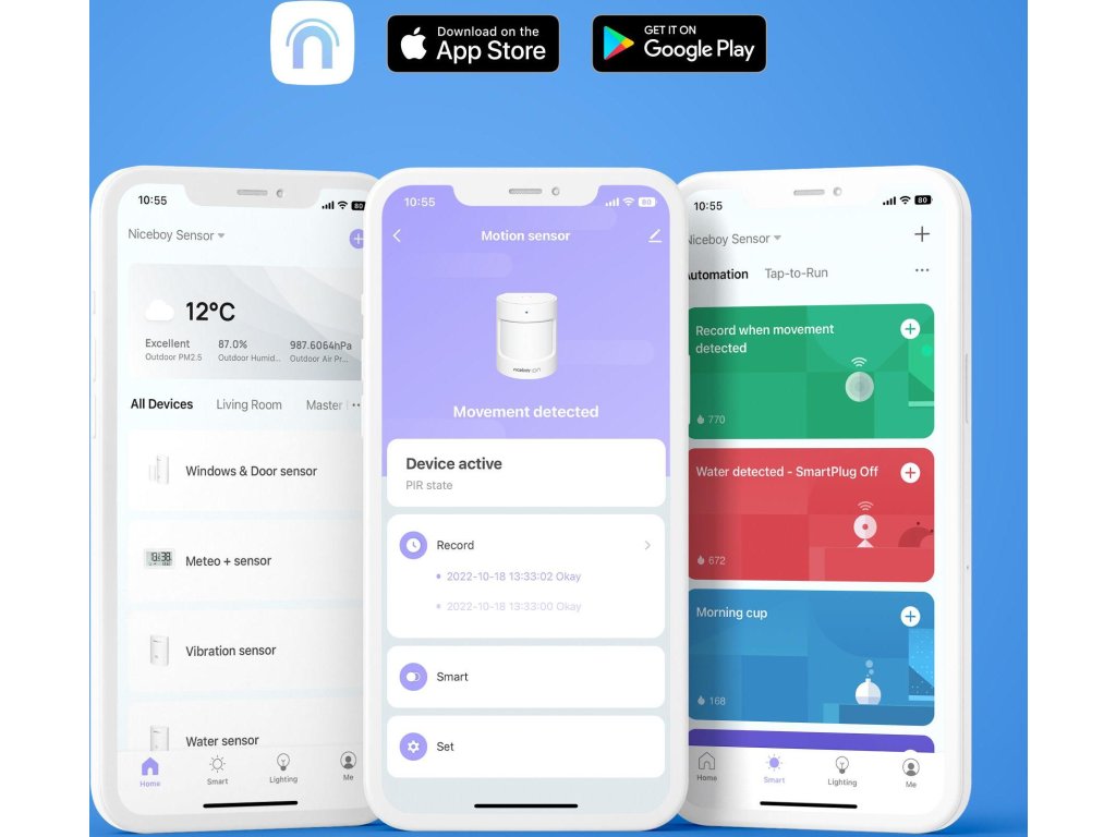 Niceboy ION ORBIS Motion Sensor Automatizace a zabezpečení vaší chytré domácnosti Bezdrátový senzor Niceboy ION ORBIS Motion Sensor detekuje pohyb pro automatické zapínání dalších chytrých zařízení nebo k zabezpečení domácnosti. Pro použití senzoru je nezbytná centrální řídící jednotka Niceboy ION ORBIS Bridge, která senzor zapojí do systému chytré domácnosti Niceboy ION. Veškeré nastavení senzoru i propojení s dalšími produkty pak provádíte rychle a jednoduše ve společné mobilní aplikaci. Chytrý senzor pohybu nejen pro zabezpečení domácnosti Niceboy ION ORBIS Motion Sensor s vysoce přesným infračerveným senzorem pro detekci pohybu vám pomůže s automatizací zabezpečení interiéru a exteriéru. Pohybový senzor odhalí nežádoucí narušení prostoru a automaticky odešle upozornění prostřednictvím aplikace Niceboy ION na mobilní telefon. Niceboy ION ORBIS Motion Sensor zvládne pokrýt velkou plochu, může se pochlubit širokým 150° zorným polem s dosahem až 7 metrů. Jednoduché zapojení během okamžiku Instalaci Niceboy ION ORBIS Motion Sensor zvládnete během okamžiku. Pro připojení senzoru k síti vaší chytré domácnosti je ale nutné mít centrální řídící jednotku Niceboy ION ORBIS Bridge. K instalaci není potřeba žádné nářadí, senzor se pomocí dodávané samolepící pásky jednoduše připevní na vybrané místo. Celým procesem procesem zapojení vás posléze provede mobilní aplikace Niceboy ION, ve které provádíte nastavení i propojení senzoru s dalšími vašimi chytrými spotřebiči. Přes mobilní aplikaci Niceboy ION ovládáte senzory i celou domácnost Kompletní ovládání senzoru Niceboy ION ORBIS Motion Sensor naleznete v mobilní aplikaci Niceboy ION, která navíc podporuje mnoho jazyků (včetně češtiny a slovenštiny). Z aplikace kromě senzorů ovládáte i všechny produkty chytré domácnosti Niceboy ION a jejich ovládání lze sdílet i mezi ostatní členy domácnosti. Ze svého telefonu si u zařízení pohodlně nastavíte parametry, vytvoříte chytré scénáře, časové plány nebo zorganizujete svá zařízení do skupin. Na váš telefon také chytrá zařízení Niceboy ION posílají upozornění a informace o změnách stavu, takže máte vždy přehled, co se ve vaší domácnosti děje. Zapojte jej do chytrých scénářů ve vaší automatizované domácnosti Po připojení k centrální jednotce ION ORBIS Bridge můžete senzor propojit s dalšími smart zařízeními ve vaší síti chytré domácnosti a naměřené hodnoty využít pro spouštění dalších chytrých produktů a automatizaci vaší chytré domácnosti (například automatické zapnutí světel v případě zjištění aktivity). Automatické scénáře nastavíte jednoduše během okamžiku ve své mobilní aplikaci Niceboy ION. Možností chytrých scénářů je celá řada, automatizace domácnosti totiž nebyla nikdy jednodušší a zábavnější. Otevřený systém chytré domácnosti s ovládáním v aplikaci Niceboy ION Ovládání a propojování vašich produktů ION probíhá jednoduše a pohodlně v mobilní aplikaci Niceboy ION. Řada chytrých senzorů ION ORBIS se ale navíc může pochlubit otevřeností svého systému, protože podporuje protokoly ZigBee 3.0, Bluetooth i MESH. Díky kompatibilitě s vícero protokoly budete tak moci do své sítě chytré domácnosti zapojit ještě více zařízení. Výdrž baterie 2 roky Napájení zajišťuje baterie CR2 s nízkou spotřebou energie, která vydrží až dva roky. Upozornění na nízký stav baterie Při nízkém stavu baterie odešle senzor upozornění na váš mobilní telefon. Kompatibilita s Google Assistant ION ORBIS Motion Sensor je kompatibilní s hlasovým asistentem Google Assistant. Obsah balení Snímač pohybu samolepka 3M Návod k obsluze Parametry Model: ORBIS Motion sensor Rozměry: 43 x 38 x 36 mm Bezdrátový protokol: Zigbee Baterie: CR2 Maximální detekční vzdálenost: 7 m Maximální detekční úhel: 150° Provozní teplota: -10° - +50°C (14° - 122°F ) Provozní vlhkost: 0 - 95% RV, bez kondenzace vlhkosti Maximální vysílací výkon (Zigbee): 9,99 dBm Pracovní frekvence: 2400 MHz - 2483,5 MHzDoplňkové parametry