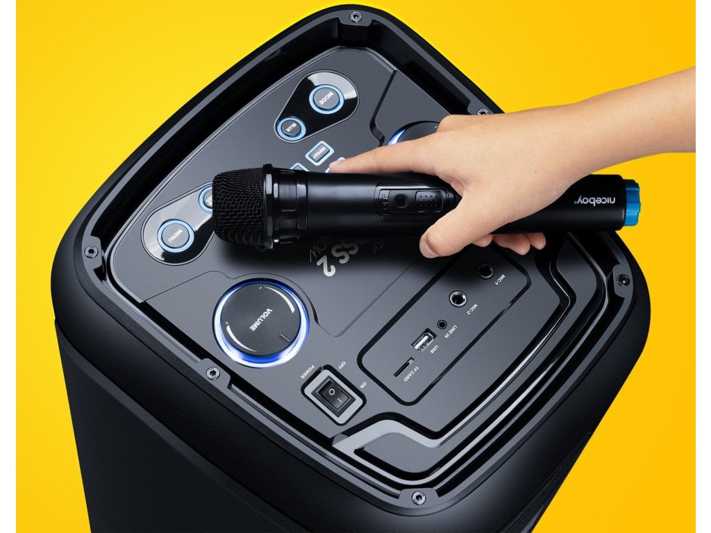 Představte si největší hudební zábavu, kterou jste kdy mohli mít! Niceboy PARTY Boss 2 má vše, co potřebujete pro vytvoření skvělého karaoke večírku nebo jam session. S bezdrátovým mikrofonem se každý může stát hvězdou večera. A dva 6,3 mm jack konektory umožní připojit i další hudební nástroje. Ale to není vše – tento reproduktor také umí nahrávat na microSD kartu nebo USB disk, takže si můžete uchovat vzpomínky na ty nejlepší hudební okamžiky.