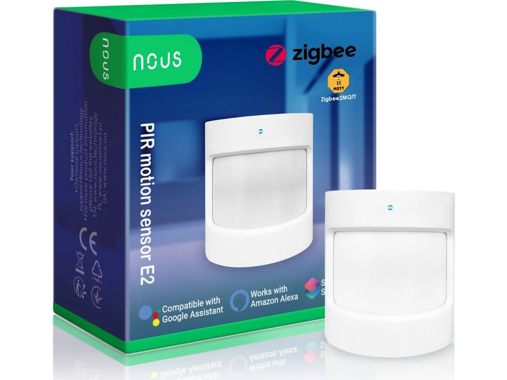 PIR senzor NOUS E2 nabízí přesnou detekci pohybu. Zařízení vám umožní vytvořit vlastní bezpečnostní systém v soukromém domě, kanceláři nebo bytě.