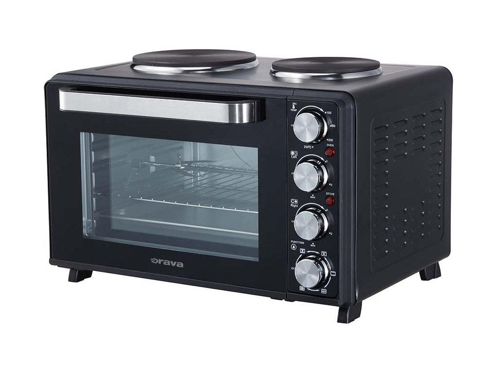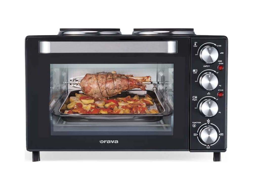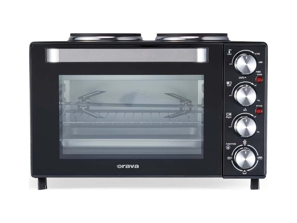 Máte v kuchyni málo místa, nebo si potřebujete na chatě vytvořit malý kuchyňský kout pro přípravu lahodných jídel? Ideálním řešením je Orava Elektra X30 – inteligentní a velmi praktická kombinace elektrické trouby s dvojvařičem.Umožní vám na malém prostoru vařit, péct, zapékat či grilovat, přičemž můžete současně používat jak troubu, tak vařiče. A přestože má tento výkonný „kuchař“ kompaktní rozměry, zvládnete na něm uvařit i velké porce – vnitřní objem trouby je 30 litrů a litinové plotýnky mají průměr 15,5 a 18,5 cm, takže na ně snadno umístíte středně velké hrnce s pořádnými porcemi polévky i hlavního jídla.