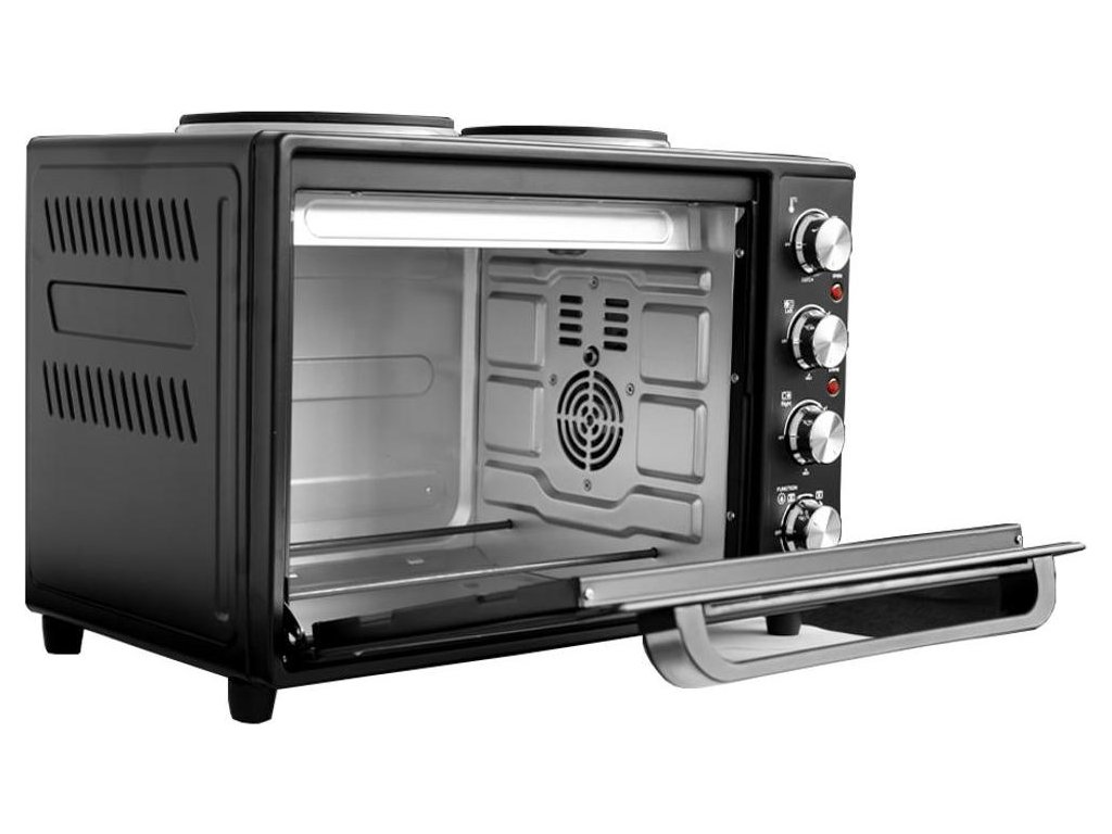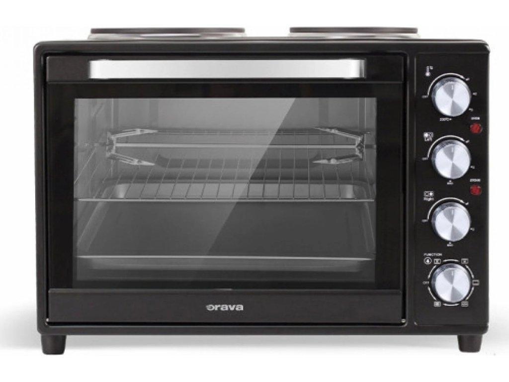 Elektrická trouba s dvouvařičem 38 LMáte v kuchyni málo místa nebo potřebujete na chalupě vytvořit malý kuchyňský koutek pro přípravu chutných jídel? Ideálním řešením je Orava Elektra X5 - chytrá a velmi praktická kombinace elektrické trouby a dvojité trouby. Umožní vám vařit, péct, zapékat nebo grilovat na malém prostoru a můžete používat troubu i varnou desku současně. A přestože je tento výkonný "šéfkuchař" trpasličích rozměrů, můžete na něm vařit obří porce - trouba má vnitřní objem 38 litrů a litinové plotýnky mají průměr 15,5 a 18,5 cm, takže se do nich snadno vejdou středně velké hrnce s pořádnými porcemi polévky a dalších jídel. Elektrická trouba je ideální pro ohřívání pokrmů nebo pečení například pizzy. Výhodou elektrické trouby se dvěma plotýnkami je oddělená regulace teploty jednotlivých plotýnek a možnost plynulého nastavení teploty od 50 do 230 °C. Maximální příkon vašeho pomocníka při vaření je 3 600 W. Součástí dodávky je také grilovací rošt a odkapávací miska na olej. - funkce trouby a vařiče současně- litinové plotny o průměru 155 mm a 185 mm- grilovací rošt a odkapávací plech součástí příslušenstvíTechnické parametry:- Barva: Černý- Rozměry (cm): 52 x 37 x 35,5 cm- Hmotnost (kg): 10,3 kg- Příkon grilu (W): 600- Příkon trouby (W): 2000- Příkon ploten (W): 600/1000- Průměr desek (mm): 155/185- Vnitřní objem trouby (l): 34- Teploty pečení: 50 °C - 230 °CDoplňkové parametry