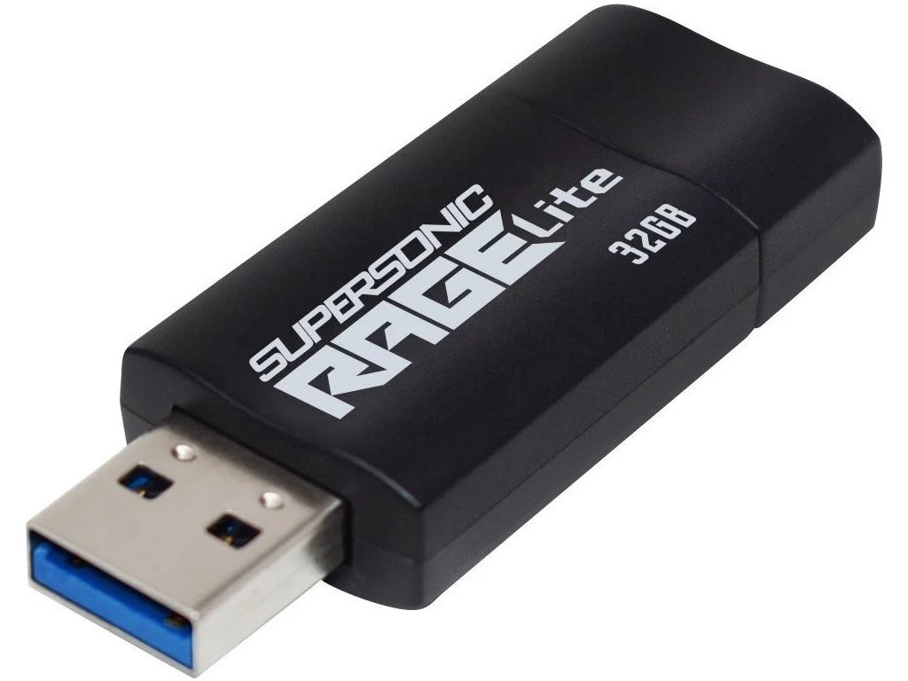 Patriot Supersonic Rage Lite 32 GBUSB flash disk s rozhraním USB 3.2 Gen1 a velikostí paměti 32 GB. Disponuje praktickým zasouvacím a vysouvacím mechanismem, který chrání před nechtěným poškozením.