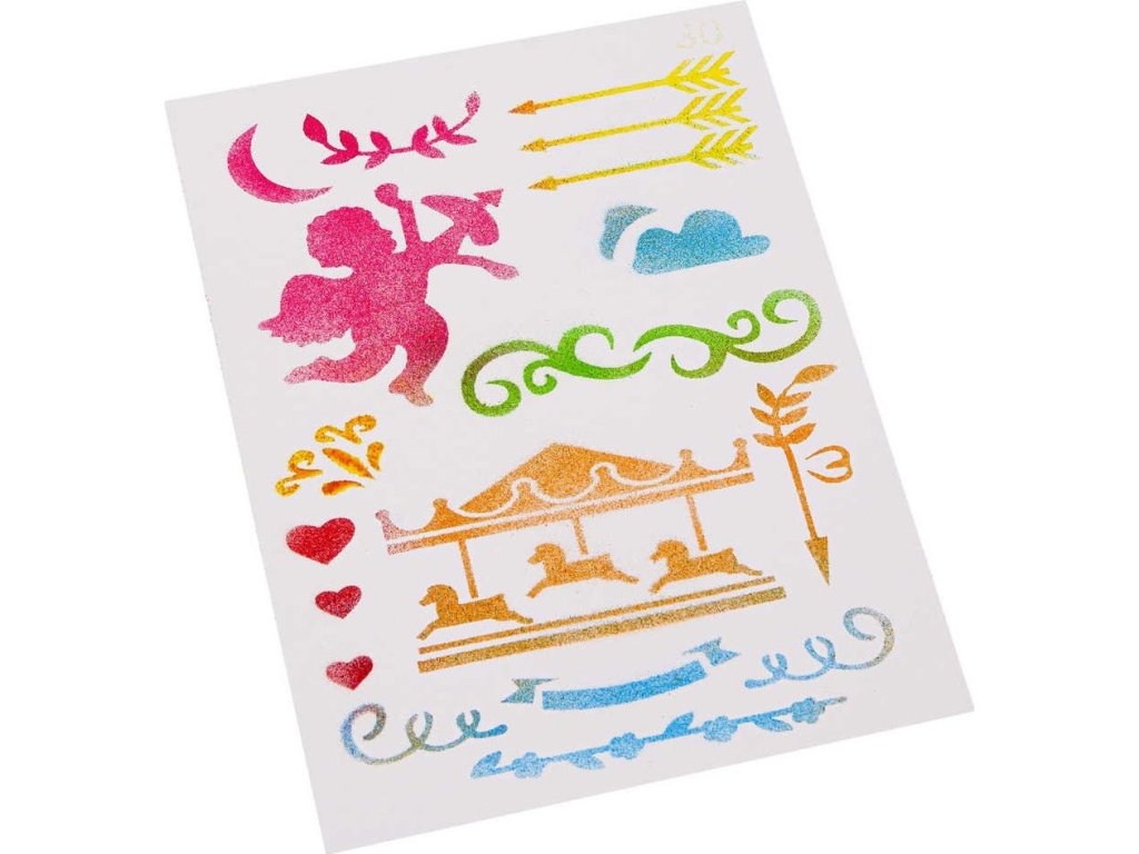 5 šablon s různými vzory a sadou fixů včetně 12 barev
