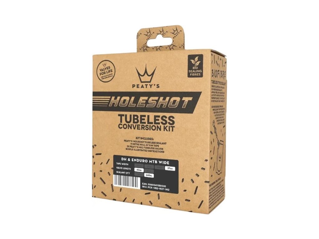 - Obsahuje pásku na ráfek Peaty's Holeshot, bezdušové ventilky MK2 a bezdušový tmel Holeshot