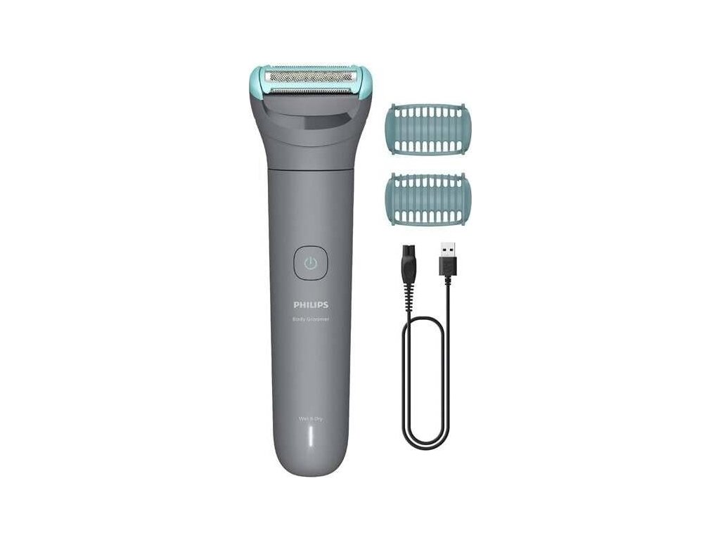 Pánský elektrický zastřihovač chloupků Philips řady 3000 pro suché i mokré holení těla a intimních partií.Holicí systém s trojitou ochranou.