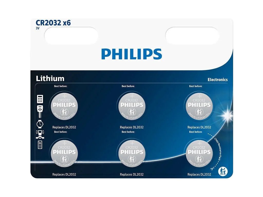 PHILIPS CR2032P6/01B Minicells Baterie, Lithium (6ks)