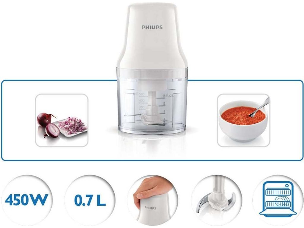 Sekáček Philips Daily Collection HR1393|00 dokáže nakrájet, cokoli chcete – zeleninu, bylinky, ořechy apod., a to za pouhých několik sekund. Vzhledem k snadné obsluze jediným stisknutím a kompaktní velikosti je krájení tak snadné, jako nikdy předtím.Technické údaje