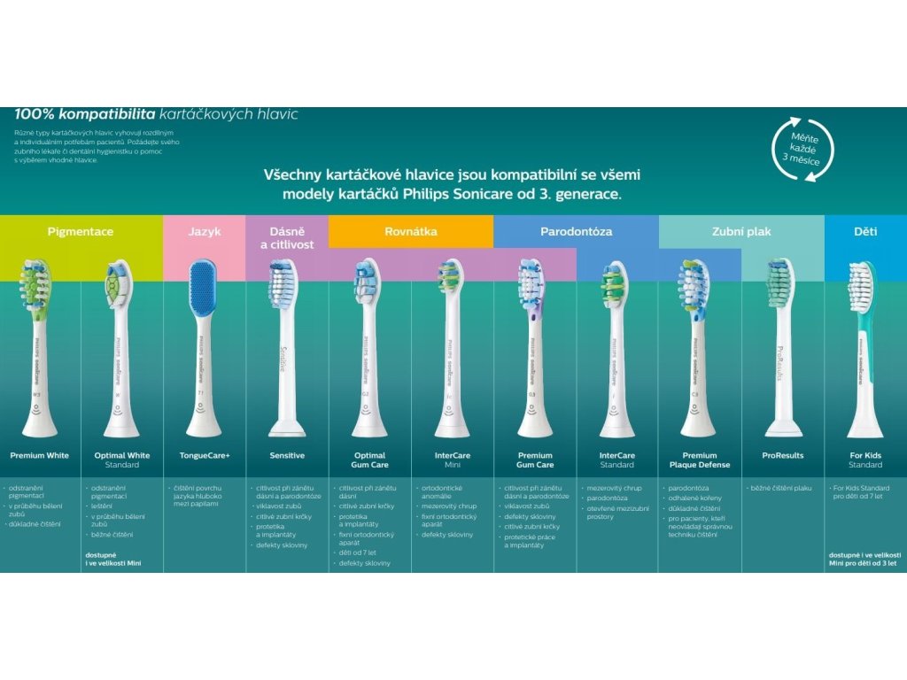 Naše čisticí hlavice pro nejhlubší čištěníZískejte zářivě bílý úsměv. Naše hlavice C3 Premium Plaque Defence kopíruje tvar vašich zubů a dásní díky jemným, flexibilním bokům, které poskytují až 4x větší kontakt s povrchem než běžná kartáčková hlavice** pro pohodlné a hloubkové vyčištění