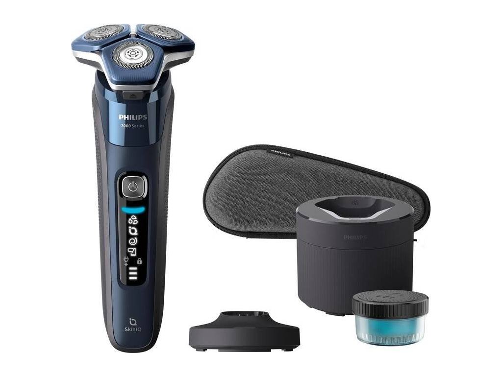 Pánský elektrický holicí strojek Philips řady 7000 pro citlivou pleť a suché i mokré holení s bluetooth připojením k chytrému telefonu a osobním plánem pro řešení problémů s pletí při holení.Povrchová vrstva s mikroperličkami snižuje tření a usnadňuje tak pohyb po tváři.