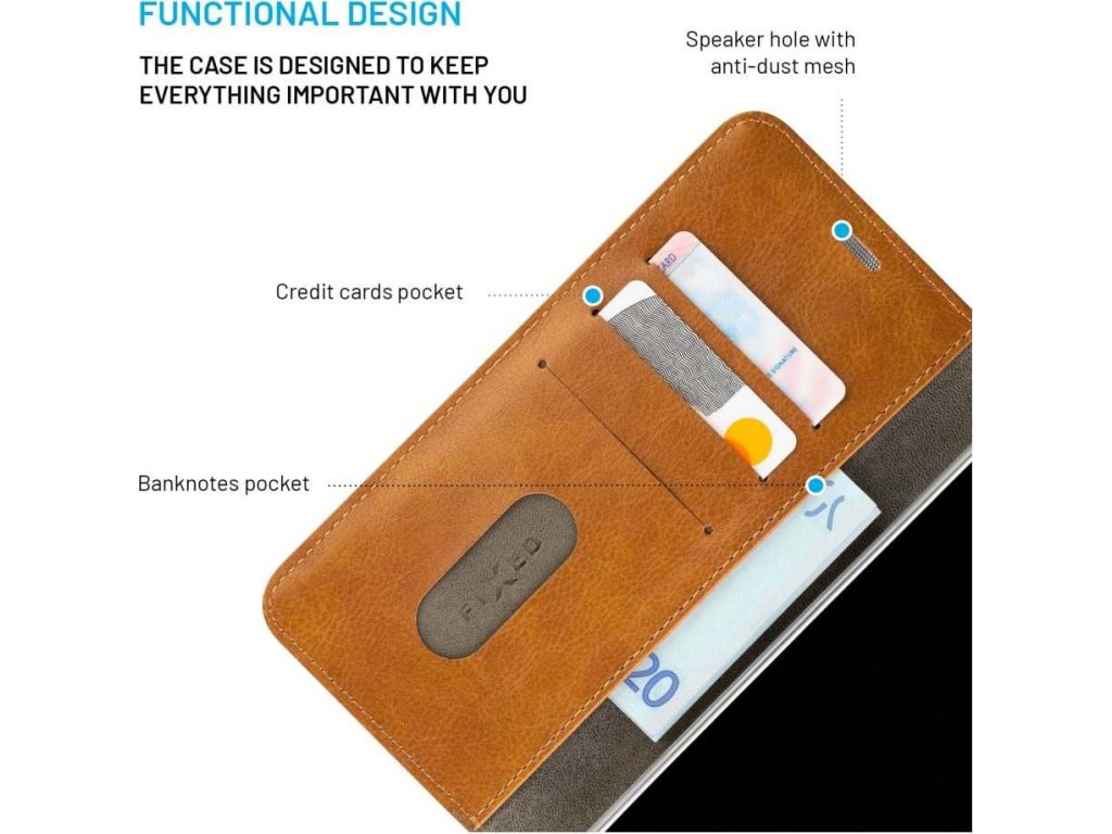 Flipové pouzdro FIXED Opus v novém elegantním designu udrží váš smartphone v bezpečí před všemi nástrahami všedního dne. Je navrženo přesně na míru danému modelu telefonu a kryje všechny jeho části včetně displeje. Pouzdro Opus je vyrobené z odolné syntetické kůže s prošíváním po okrajích, vydrží i hrubší zacházení, a přitom zachovává pouzdru decentní vzhled. Díky tenkému provedení pouzdro pouze minimálně zvětšuje rozměry telefonu a pohodlně se tak vejde do kapsy nebo do kabelky. Po odklopení přední části najdete větší kapsu na bankovky a tři menší přihrádky, které slouží pro uschování kreditních karet. Bezpečné zavírání pouzdra zajistí přezka s magnetickou pojistkou. Otevřené pouzdro lze nastavit horizontálně do polohy stojánku pro pohodlné sledování videa. Pouzdro FIXED Opus je tím pravým doplňkem pro váš telefon, který ochrání před pády, škrábanci i nečistotami, a navíc skvěle vypadá.Vlastnosti:
