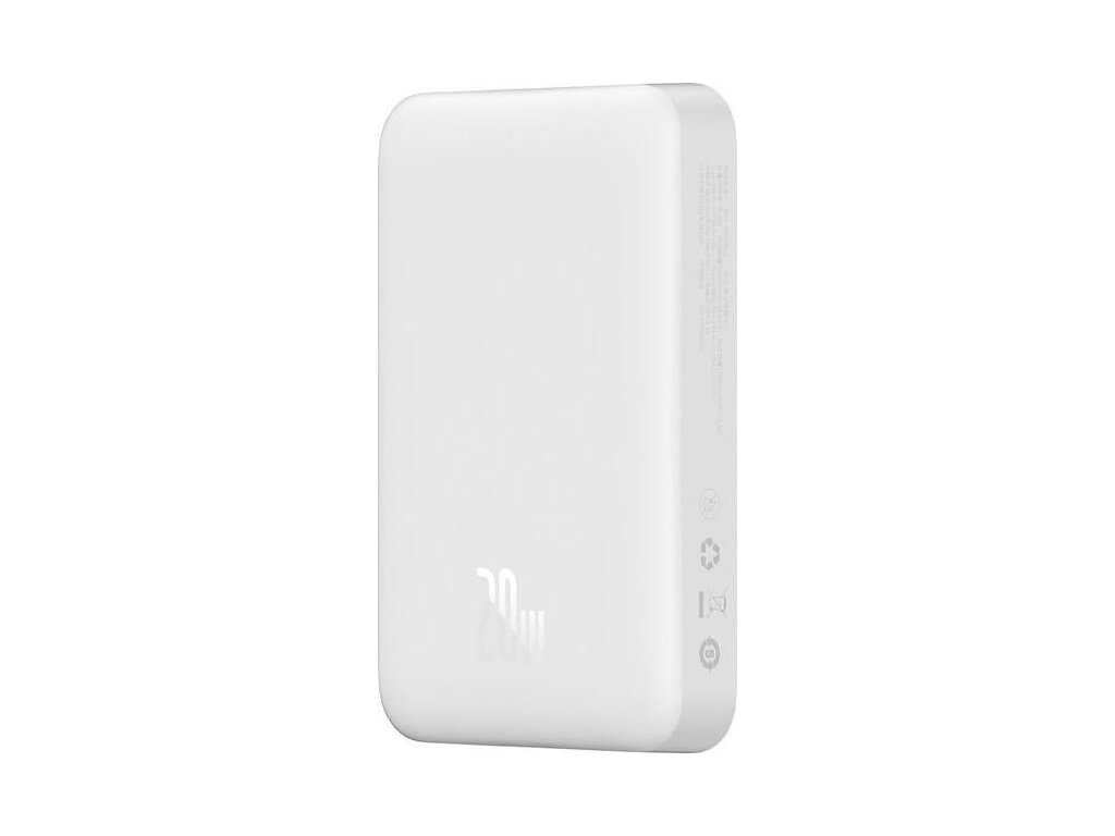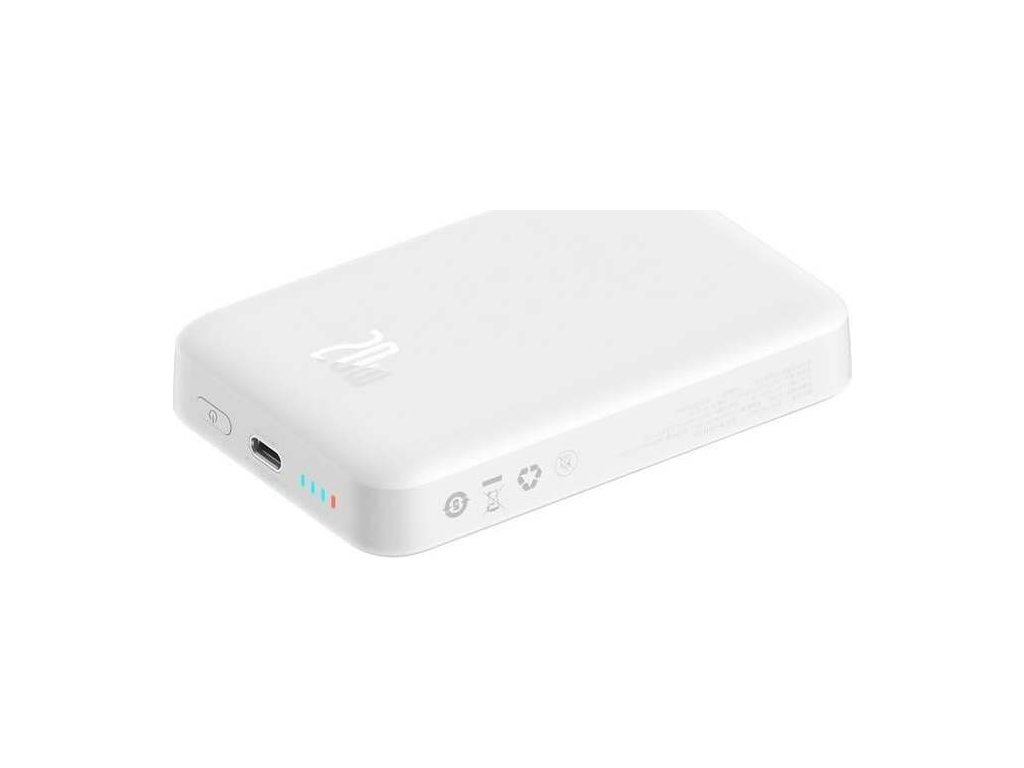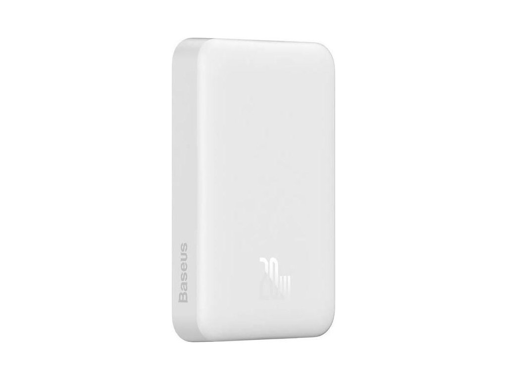 Powerbanka Baseus Magnetic Mini 10000mAh 20W (bílá).Nabíjejte svá zařízení rychle a bezpečně pomocí powerbanky Baseus! Baseus Magnetic Mini powerbank je vybavena portem USB-C a umožňuje také bezdrátové nabíjení. Její kapacita je až 10 000 mAh. Má také vestavěný displej, který umožňuje kdykoli zkontrolovat kapacitu baterie. Podporuje takové protokoly rychlého nabíjení, jako je například PD 20W.